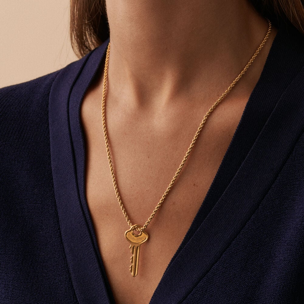 El colgante Agatha Paris Llave pertenece a la colección Lucky de María Pombo, un amuleto que abre la puerta a nuevas oportunidades y proyectos.