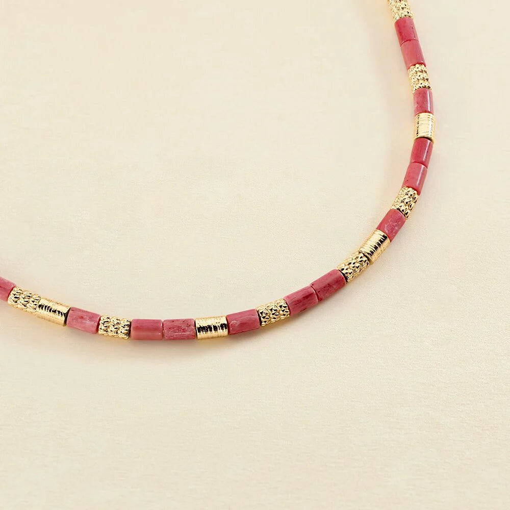 Collar Agatha Paris Petra con tubos de piedras naturales y metal acabado en oro.