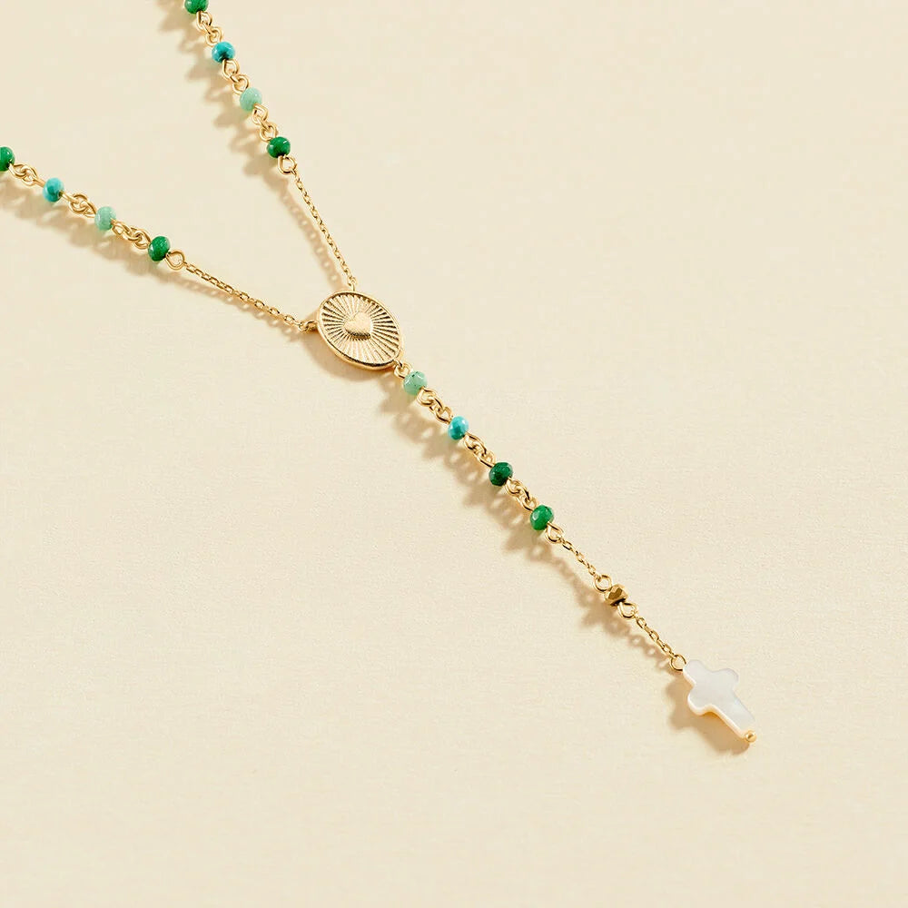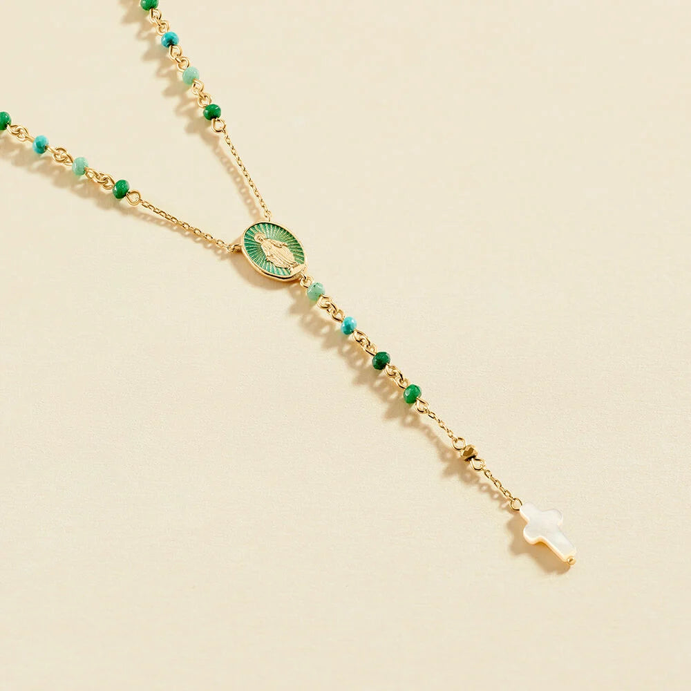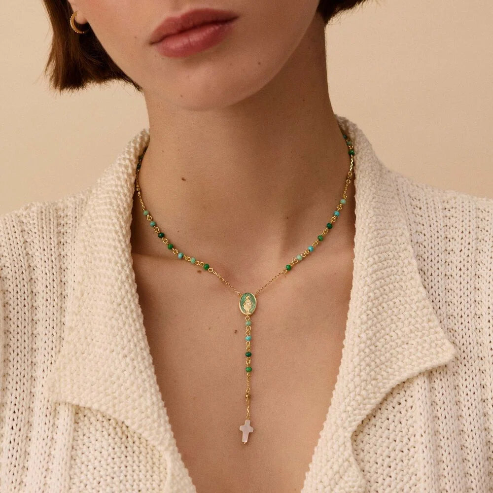 Collar Agatha Paris Sunset verde tipo rosario con medalla esmaltada.