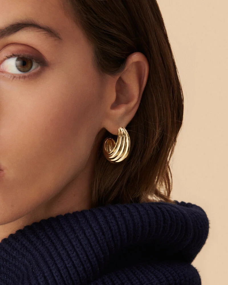 Criollas Agatha Paris N-13 doradas con forma de concha. Pertenecen a la colección N-13 de María Pombo.