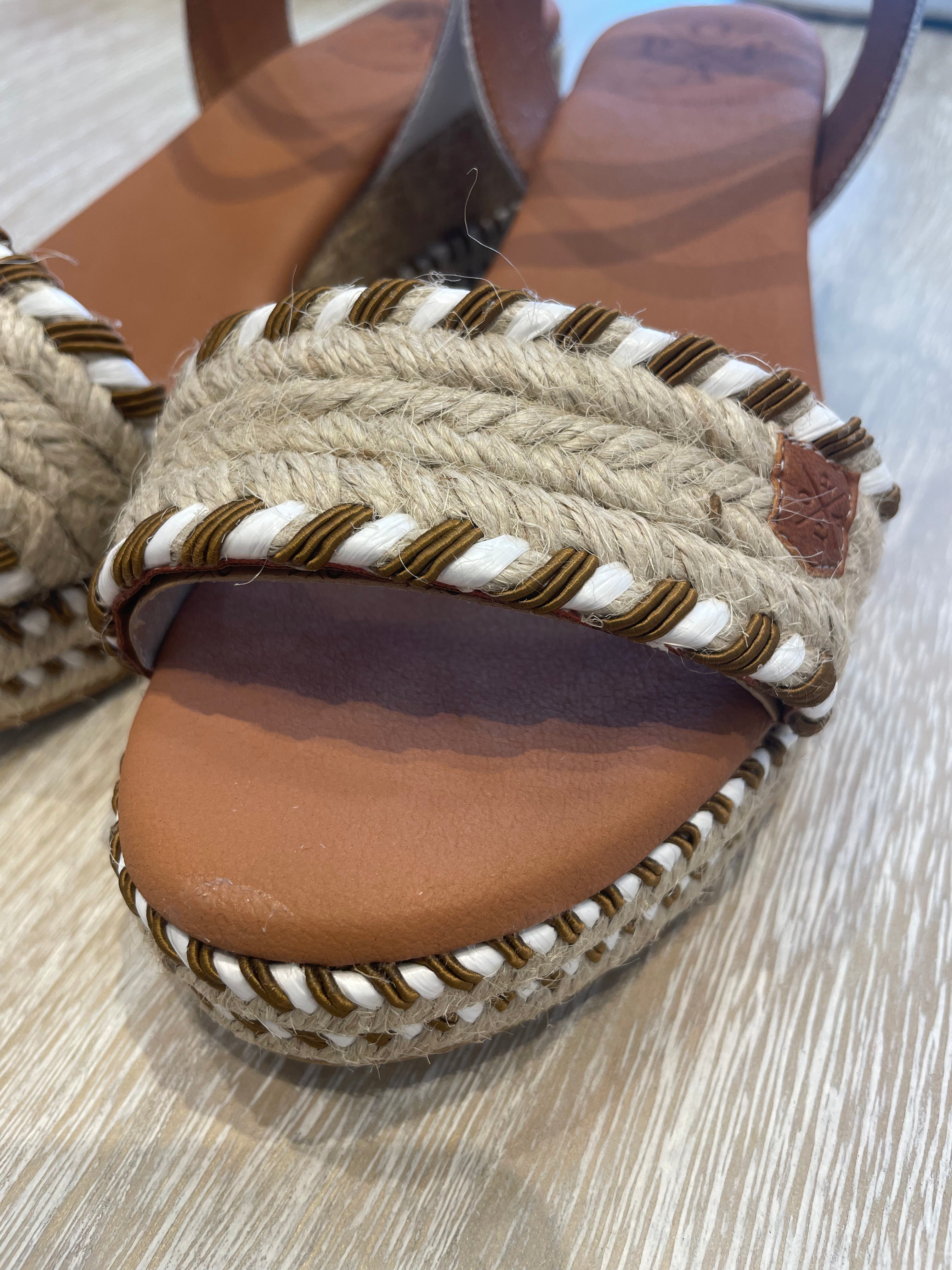 Cuña Popa Zante cuero trenzada en blanco y cuero.