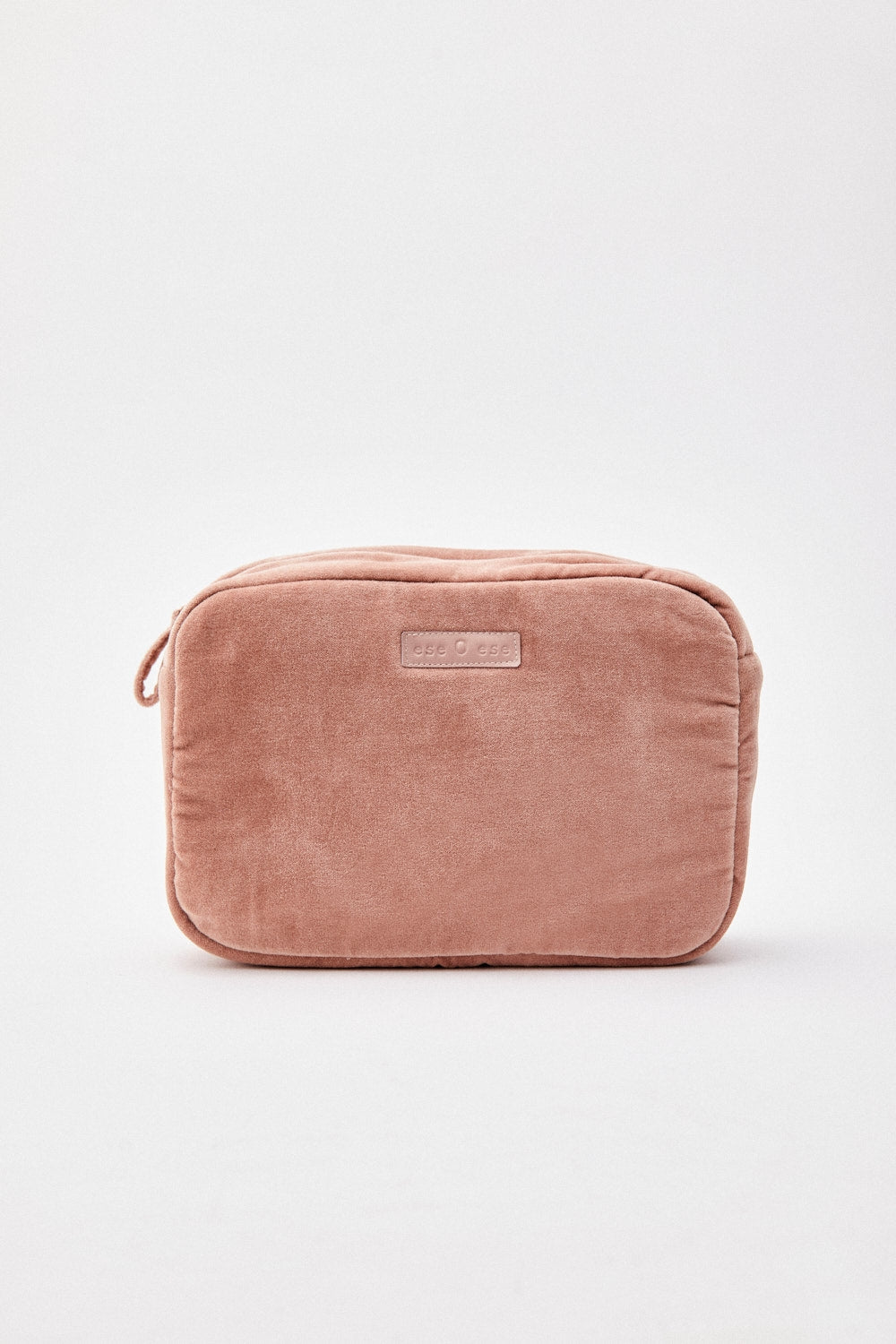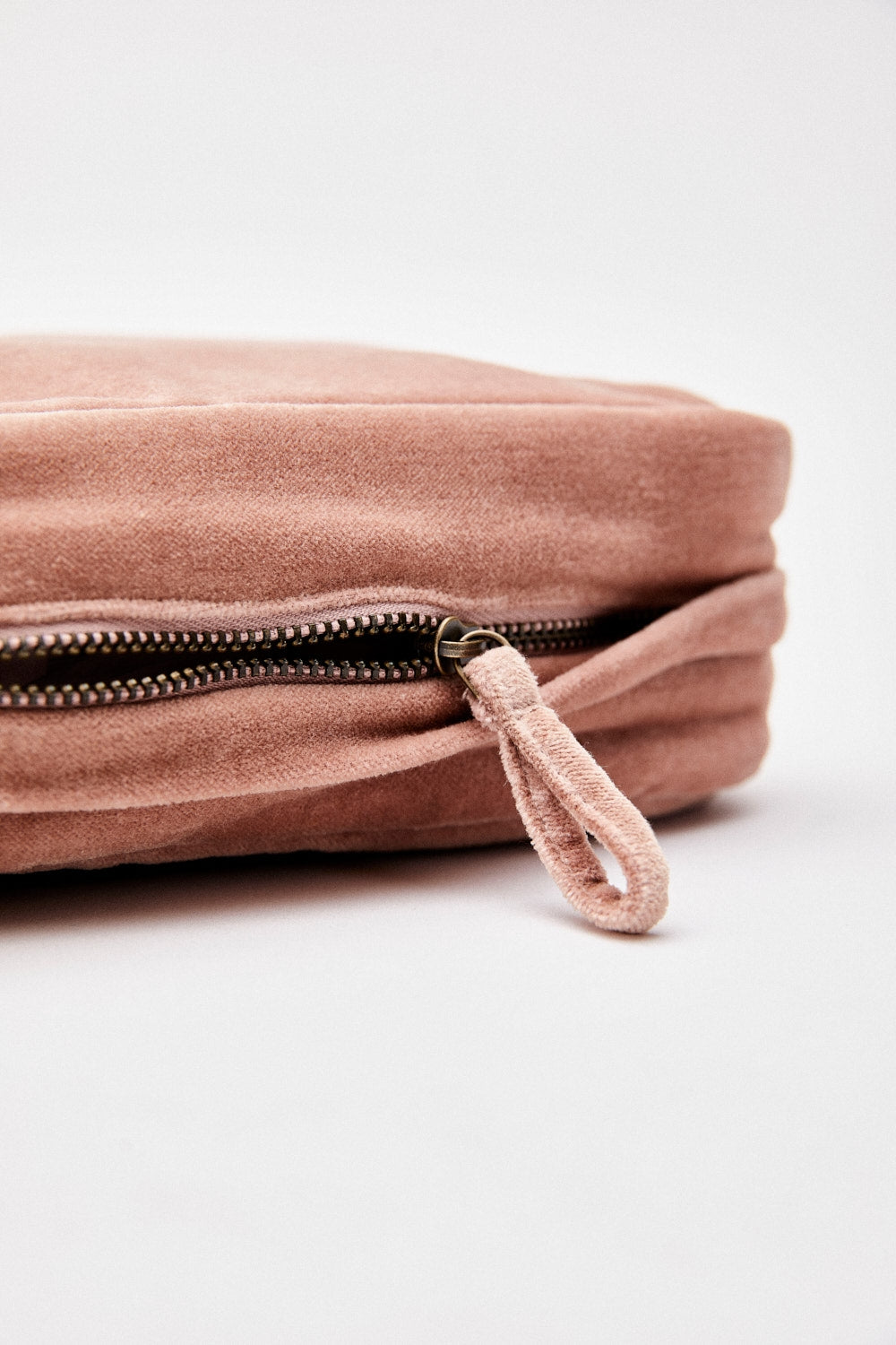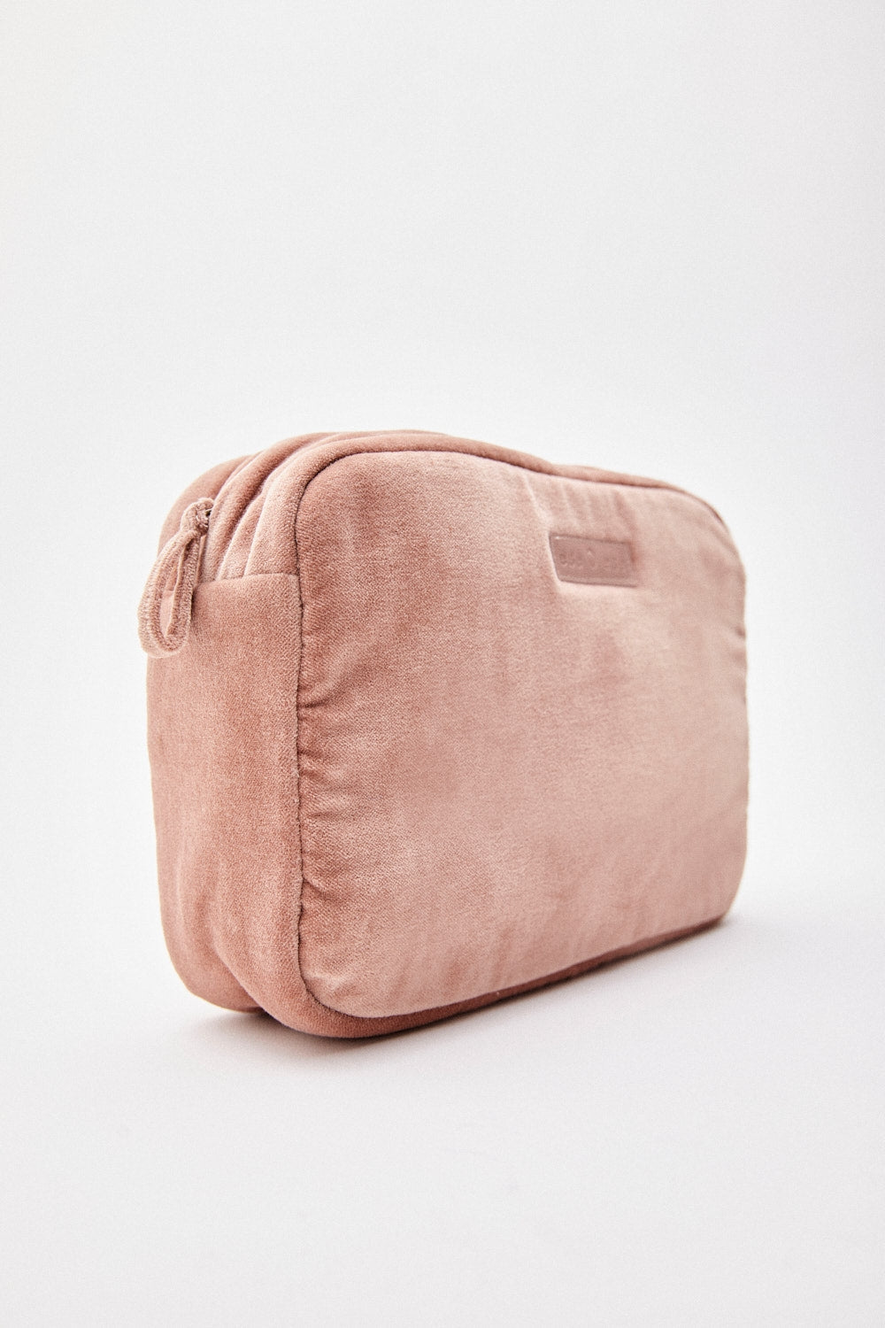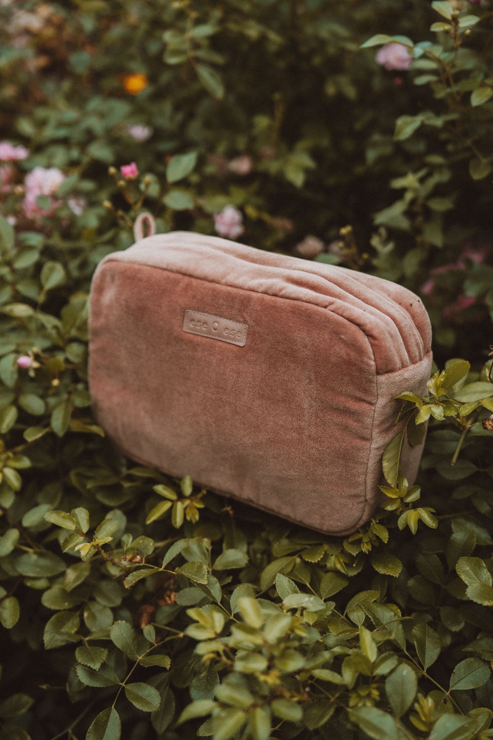Neceser eseOese Velvet en tejido de terciopelo color rosa.