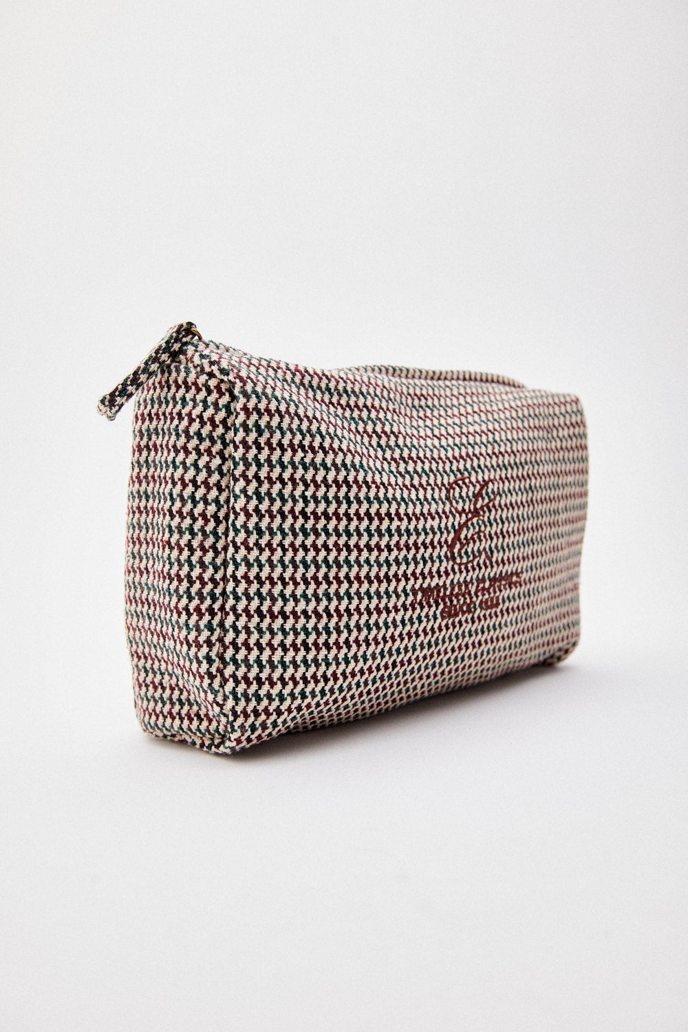 Neceser eseOese Windsor de tela con estampado en tonos burdeos y verde.