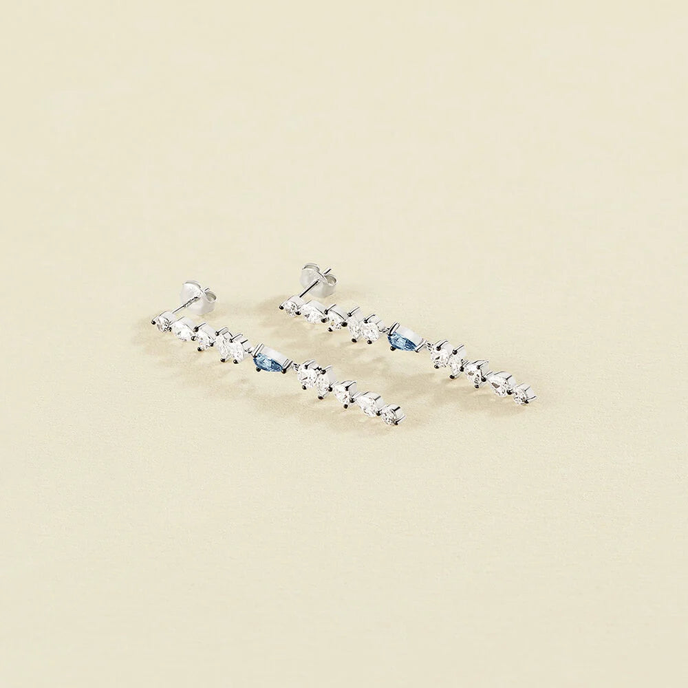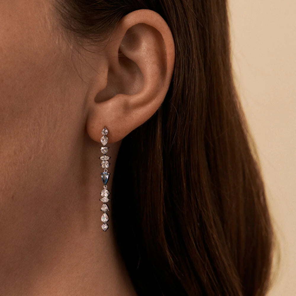 Pendientes Agatha Paris Jackie largos en plata de ley con circonitas en cristal y aguamarina.