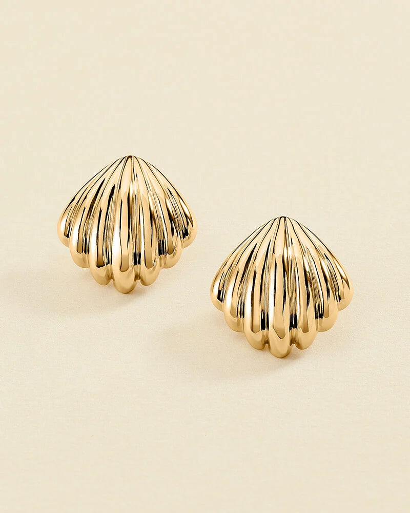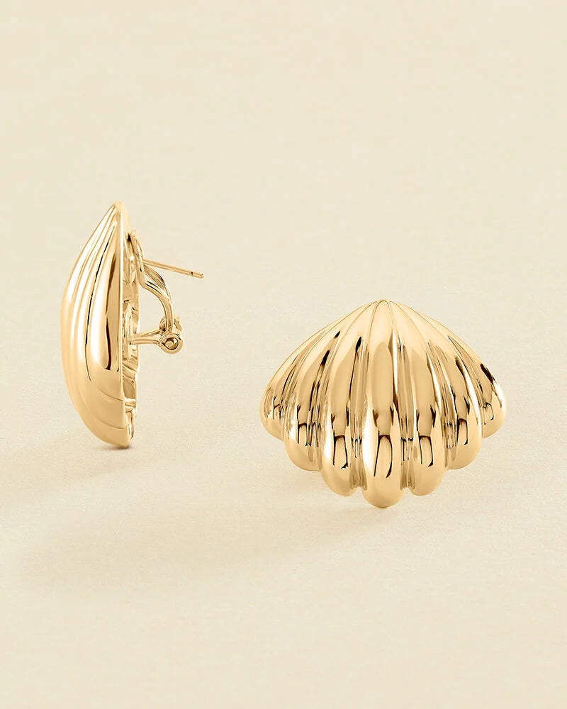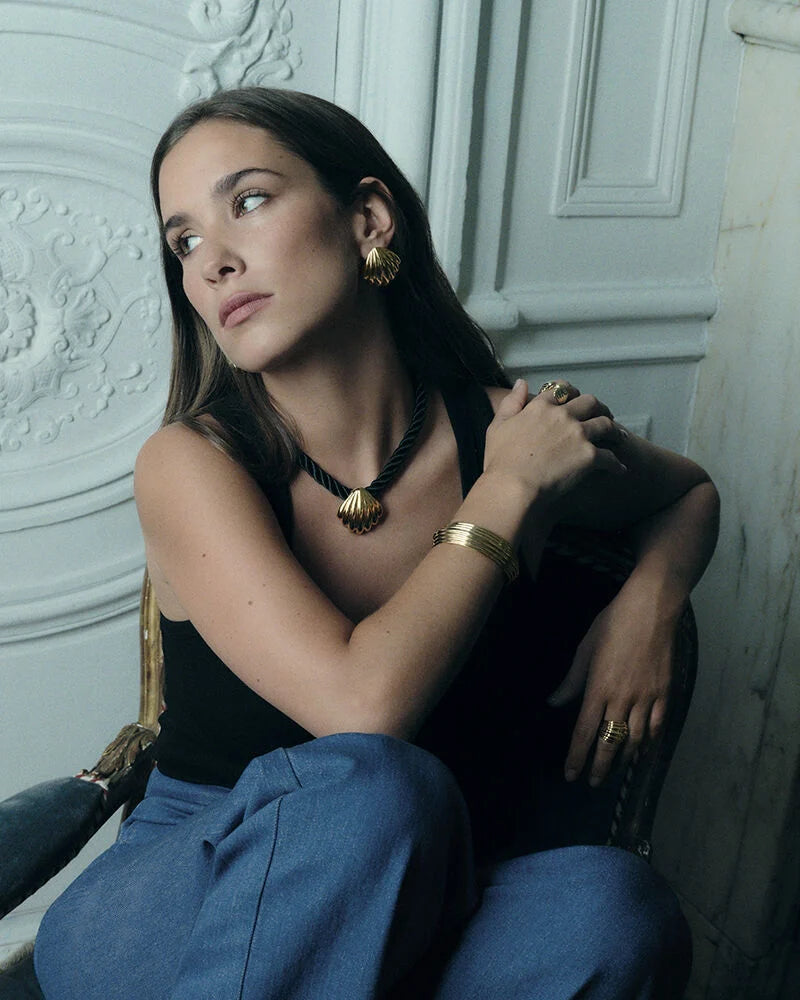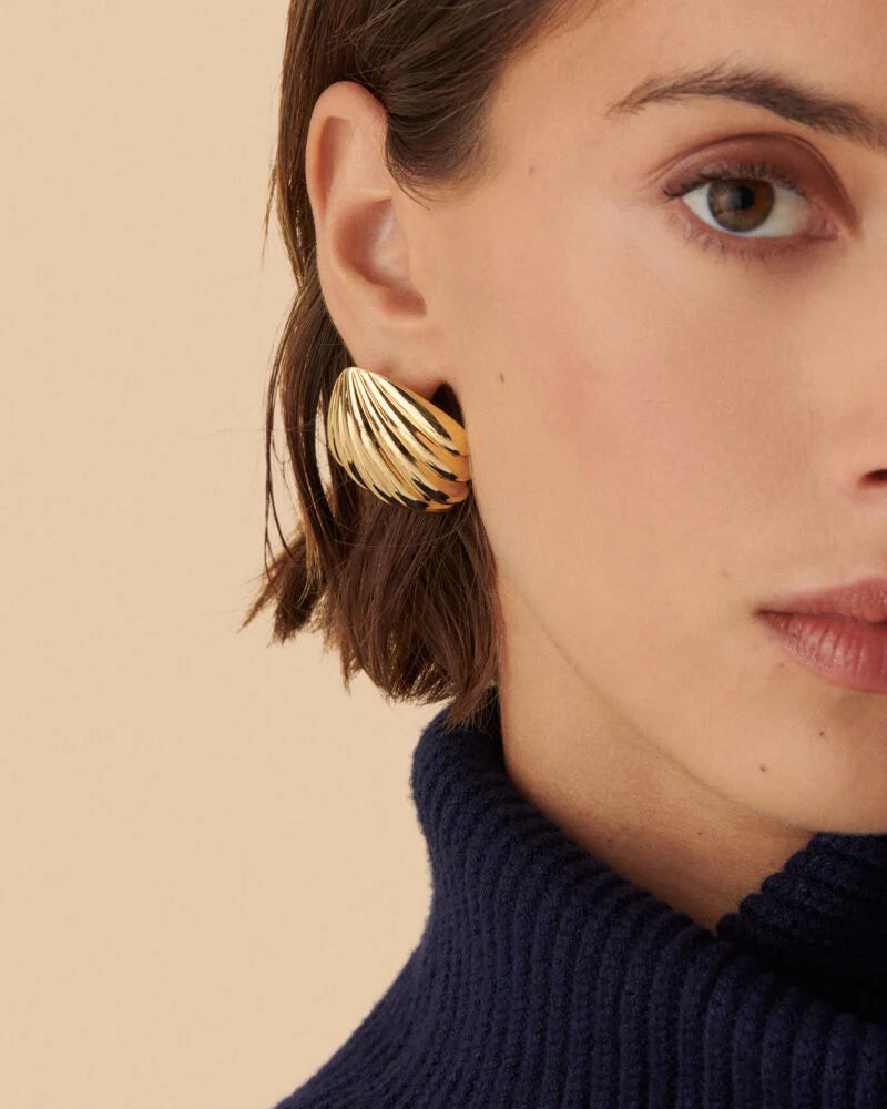 Pendientes Agatha Paris N-13 acabado dorado con forma de concha de n tamaño XL. Pertenecen a la colección N-13 de María Pombo.