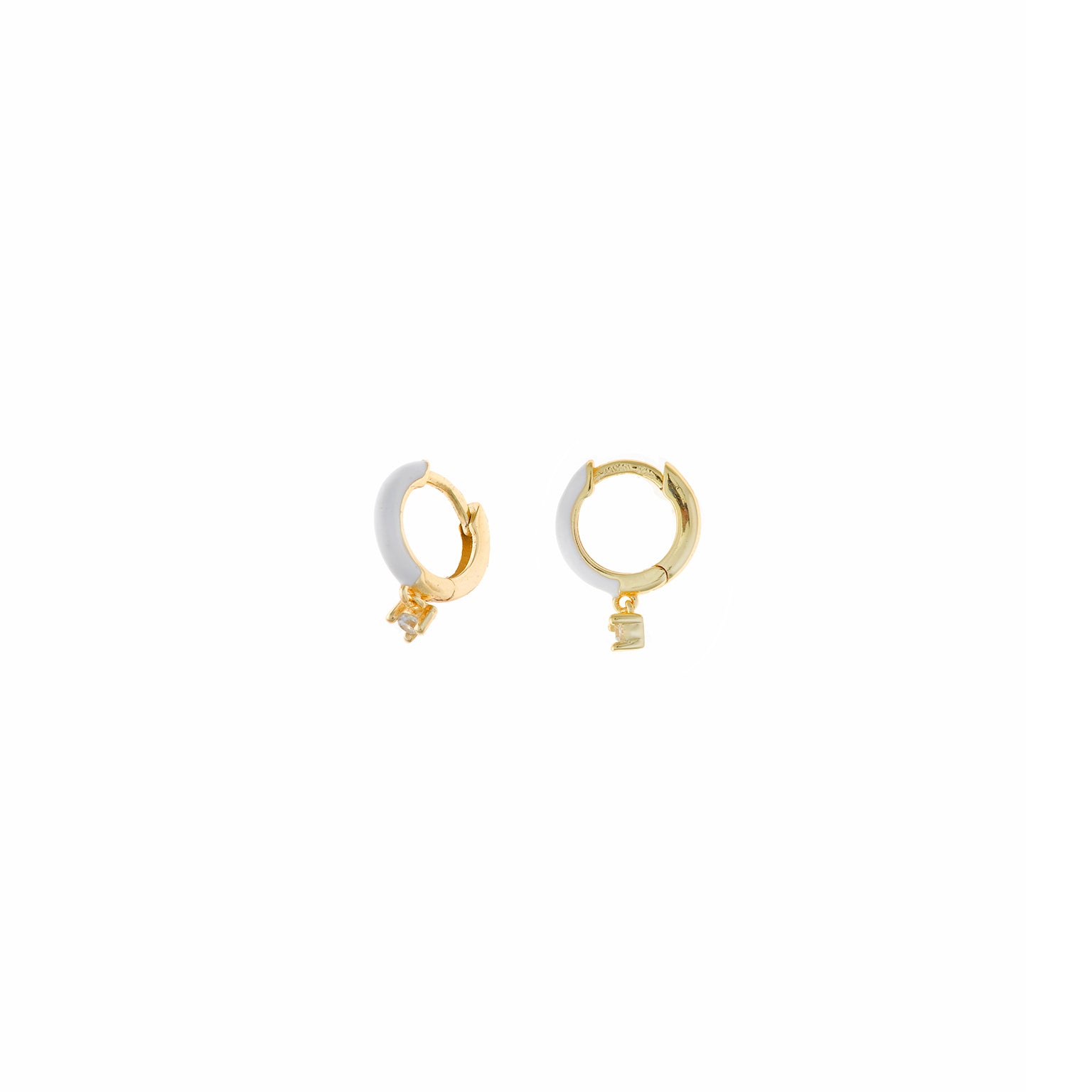 Pendientes Salvatore Plata con esmalte blanco y circonita, en arilla.