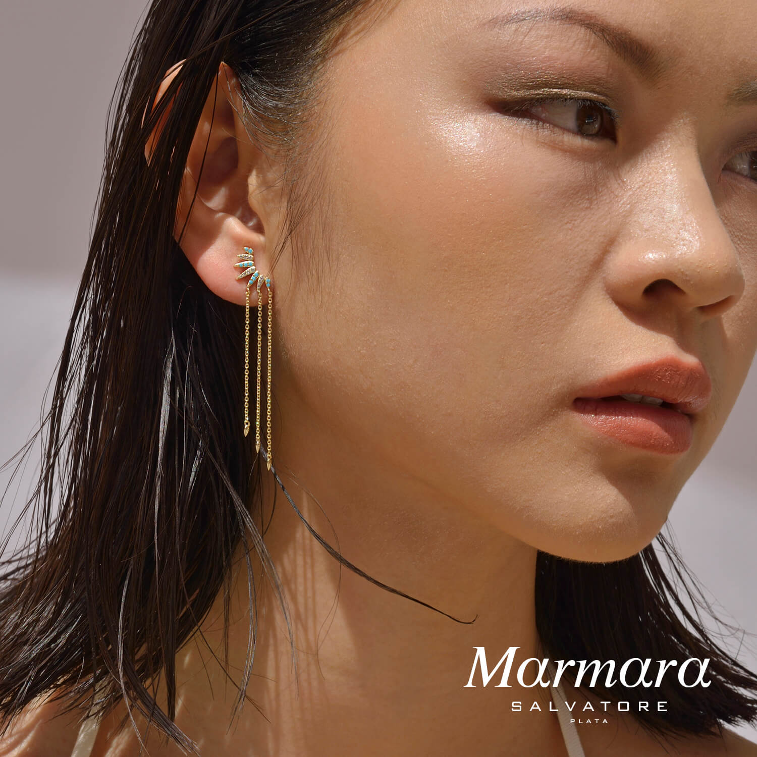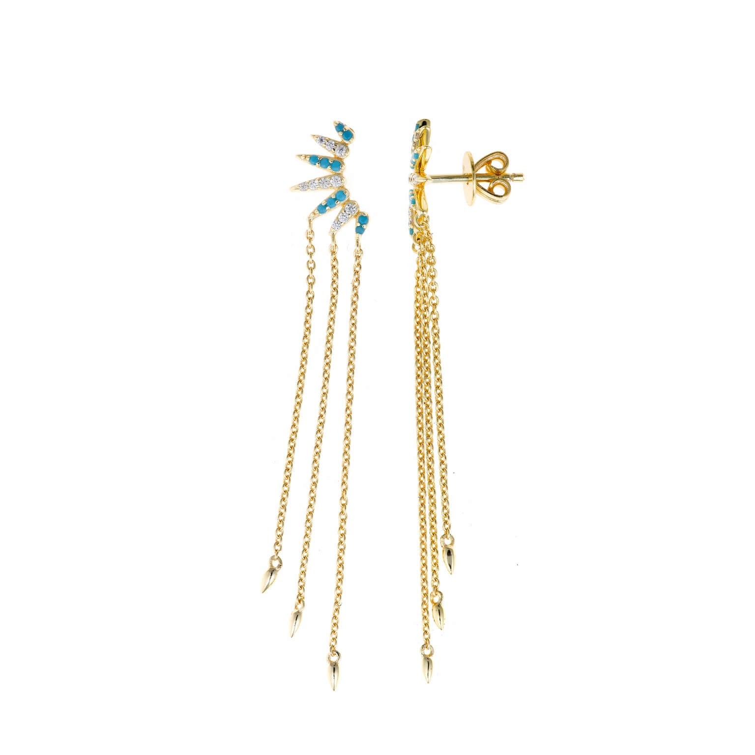 Pendientes SALVATORE PLATA de tres cadenas con turquesas. Los pendientes Salvatore Plata de 3 cadenas son originales y muy cómodos. Hechos en plata de ley con baño de oro.