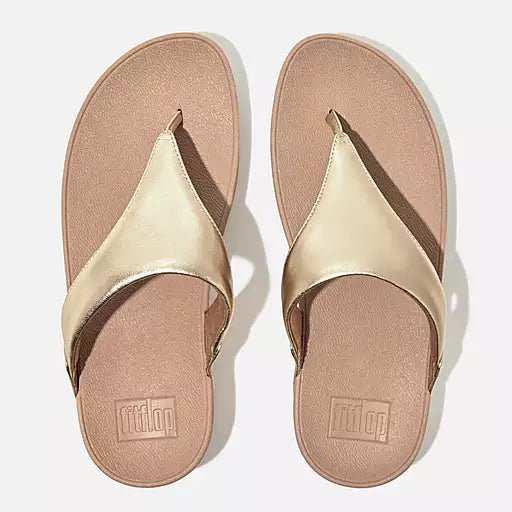 Sandalia FITFLOP Lulu en color platino con empeine triangular de cuero suavemente acolchada.