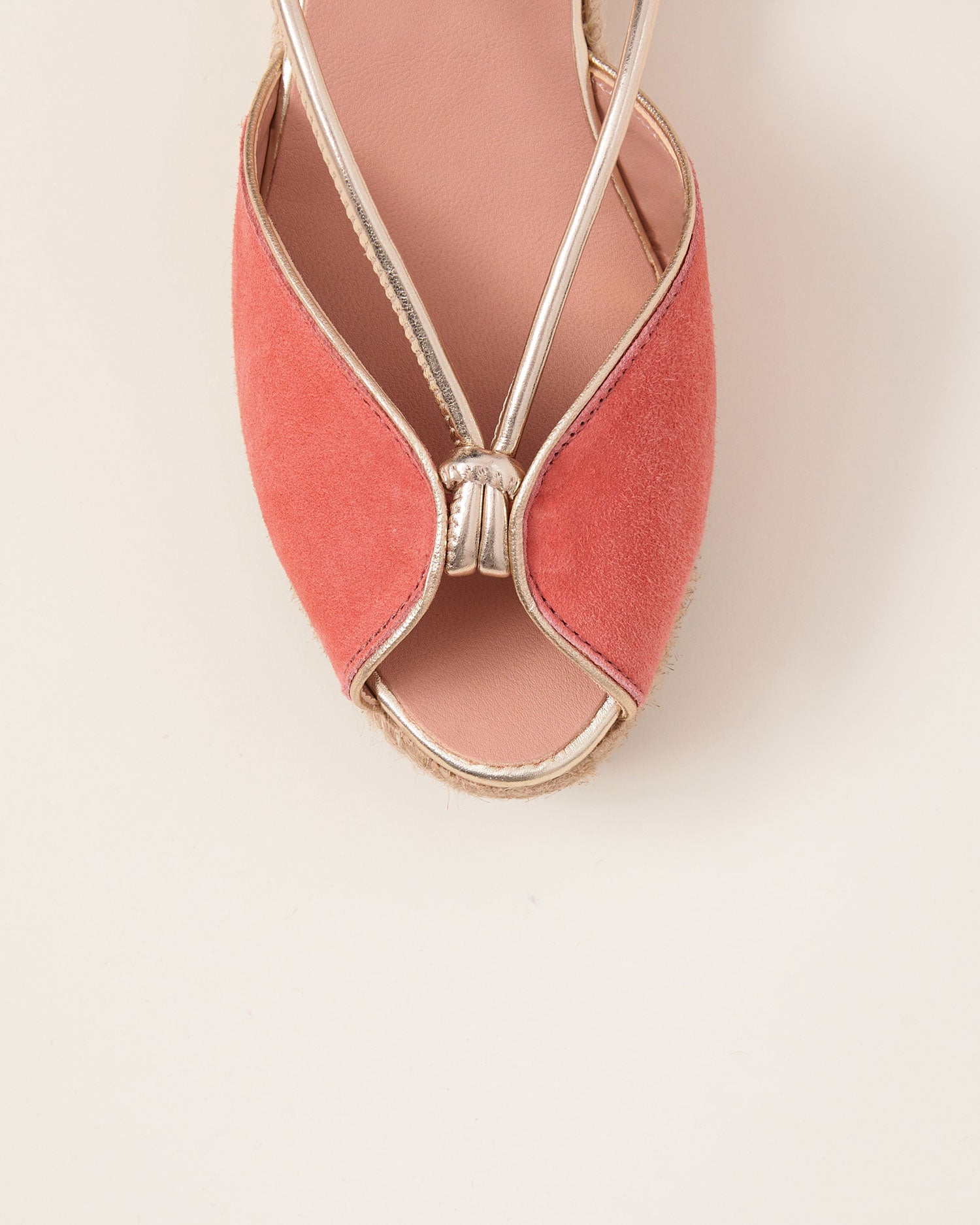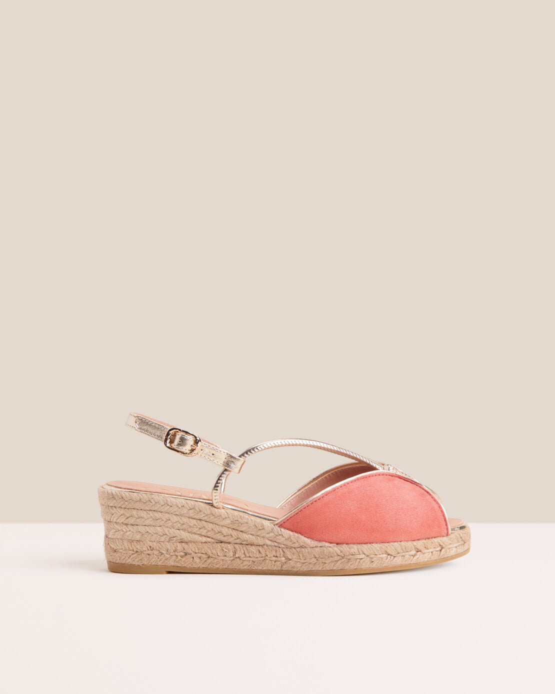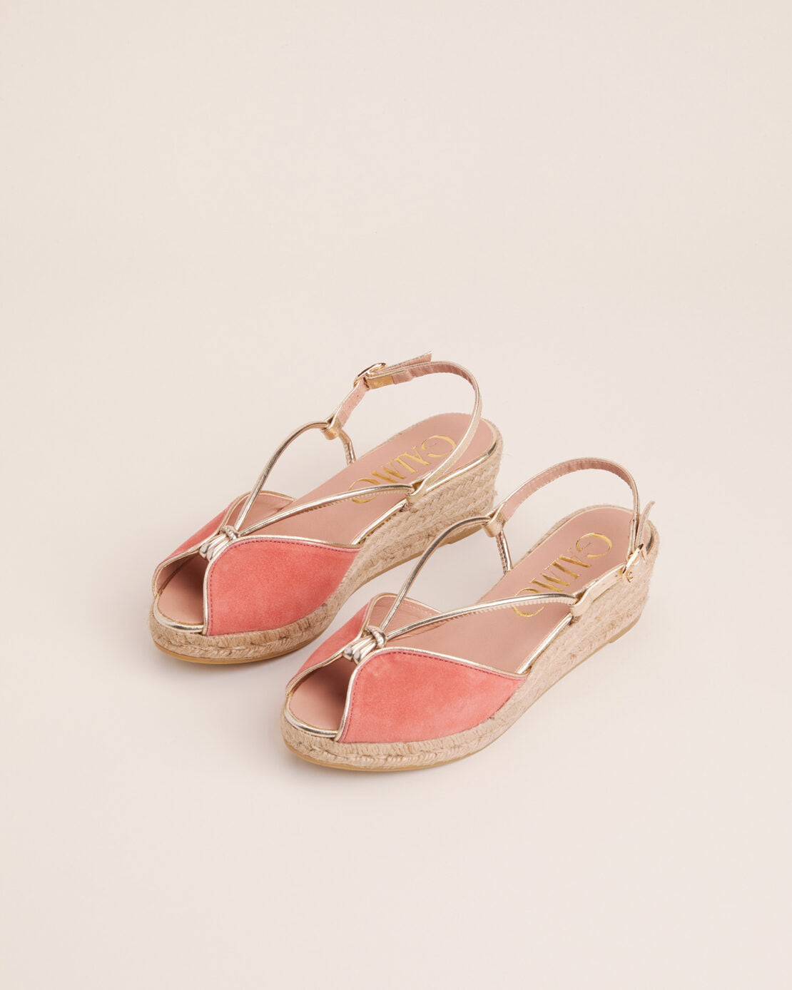 Sandalia Gaimo Calima Melon de ante con tiras metalizadas y plantilla acolchada.
