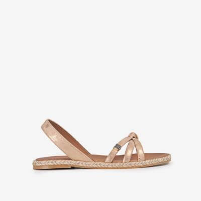 Sandalia POPA modelo ensonga en laminado rosa, plana con tiras enlazadas. La sandalia Popa ensonga es perfecta para cualquier look veraniego.