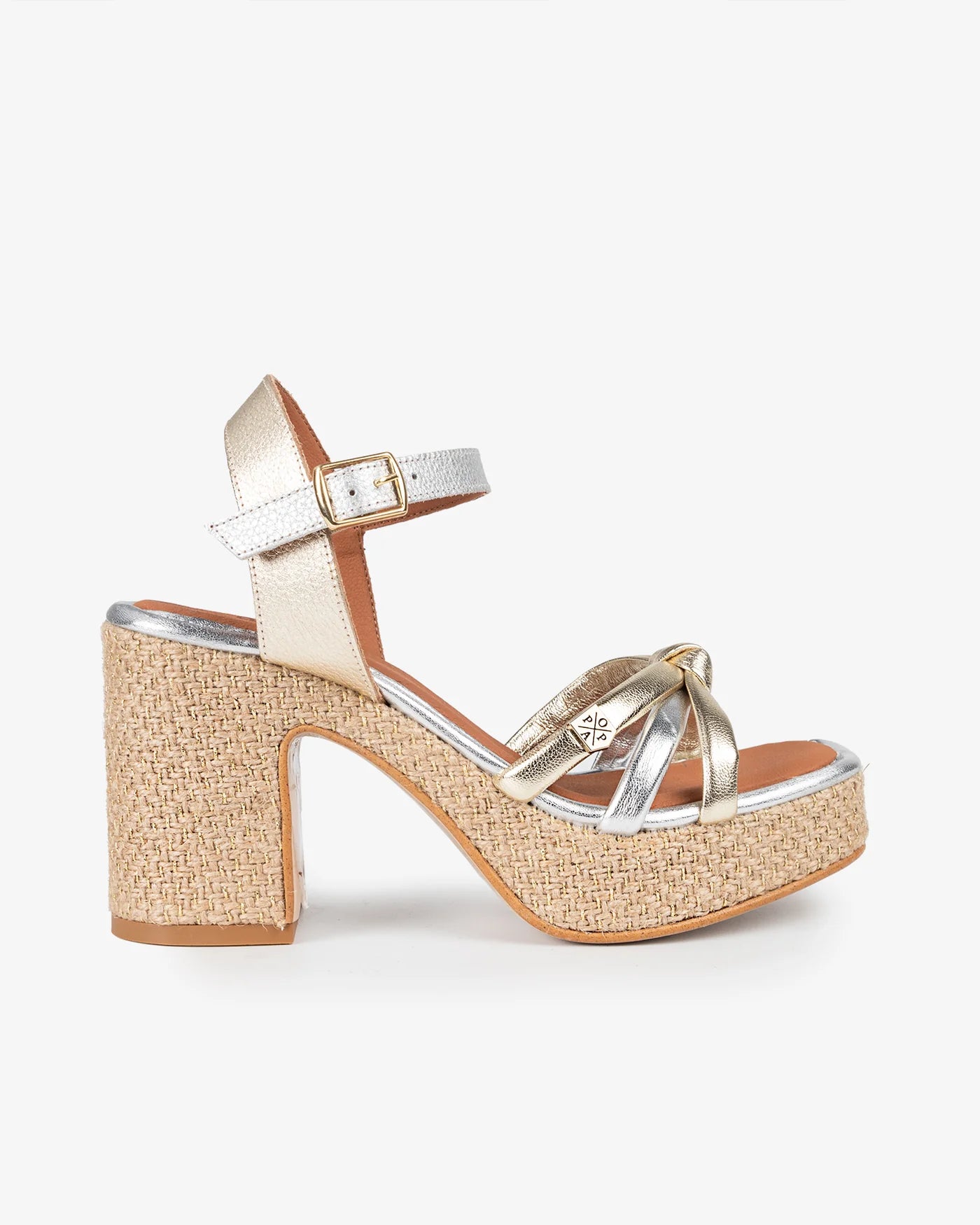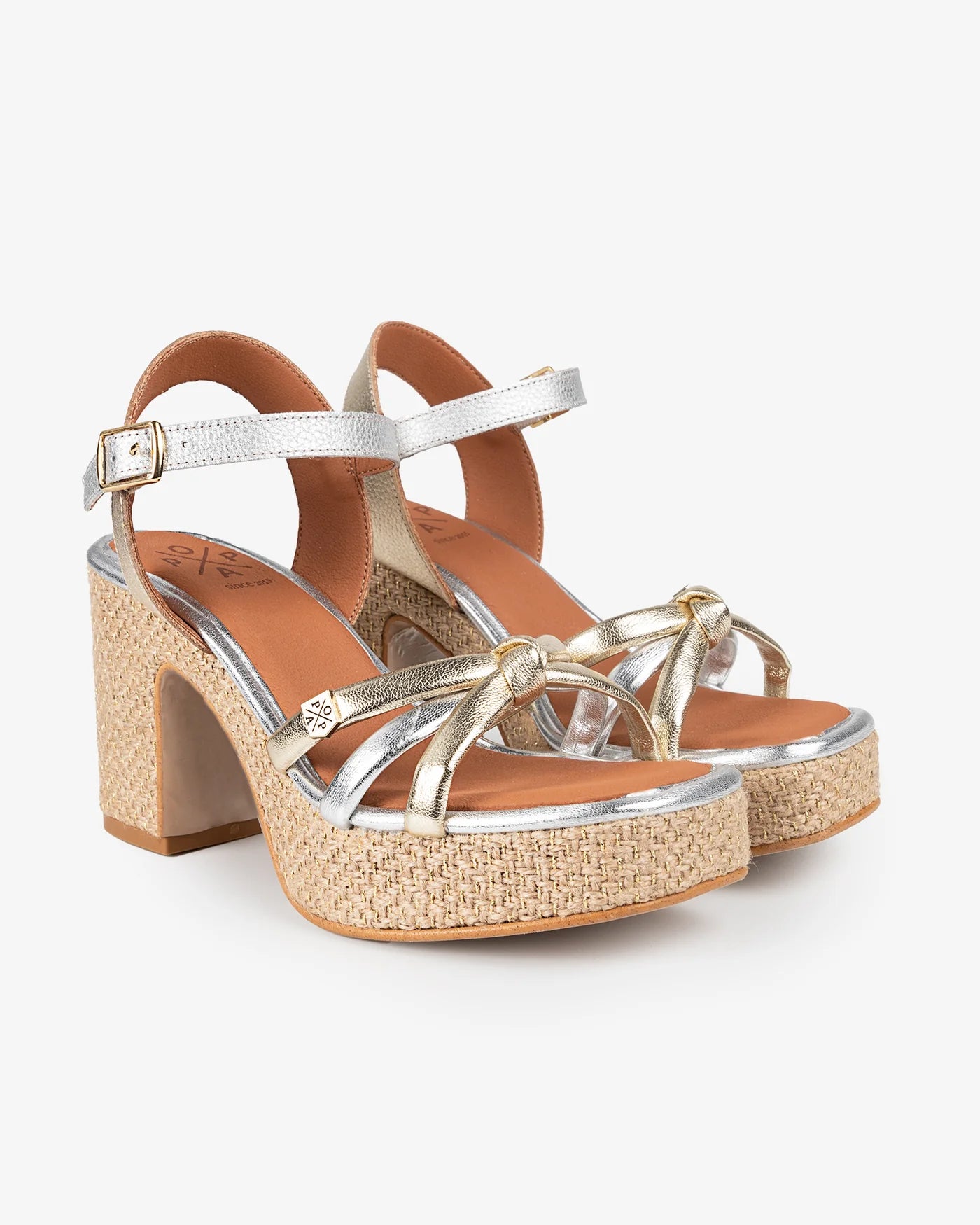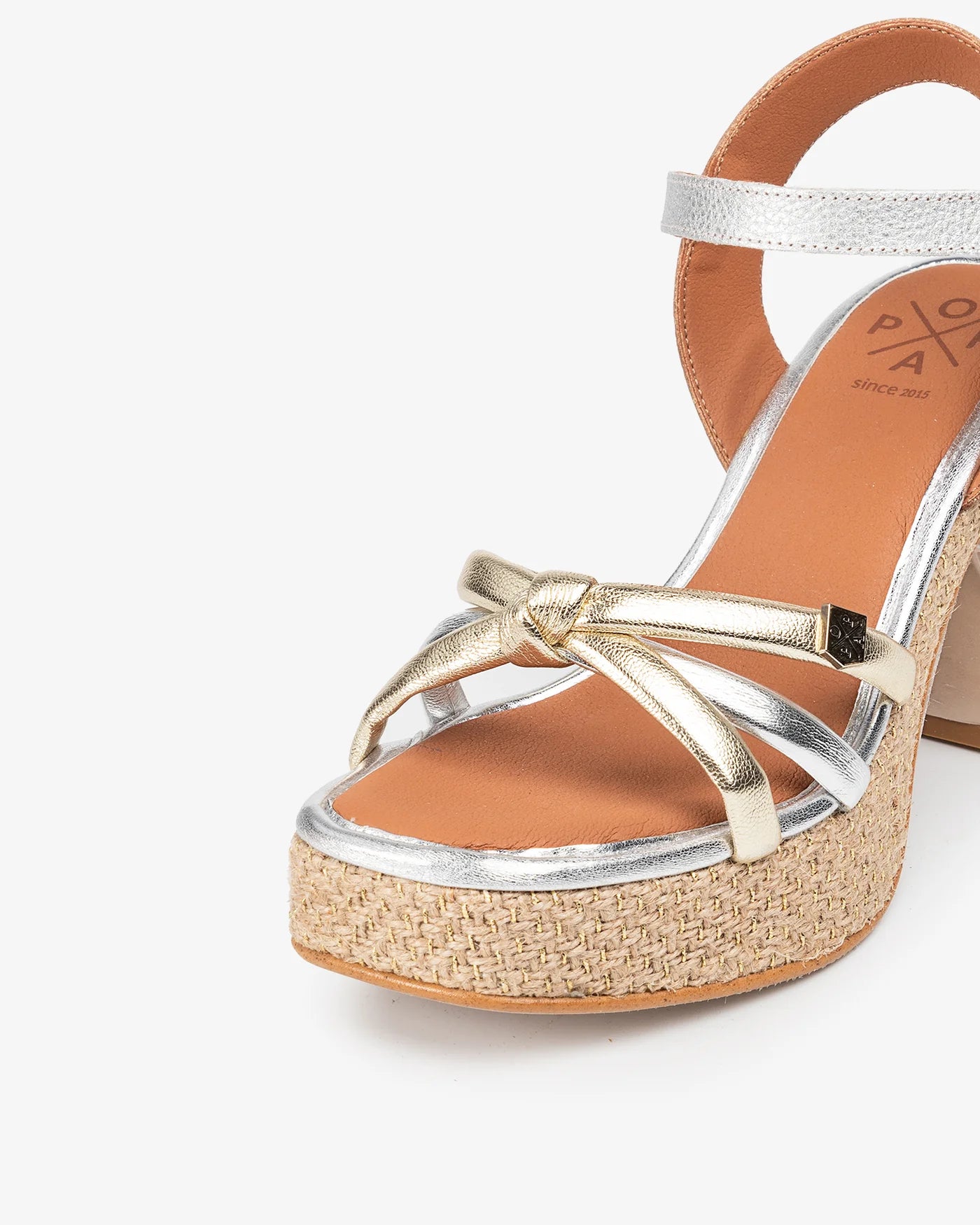 Sandalia POPA Jolla con tiras metalizadas en piel en dorado y plata combinado.