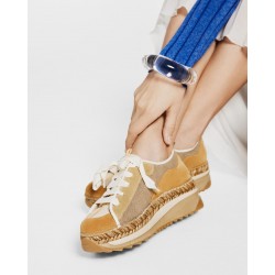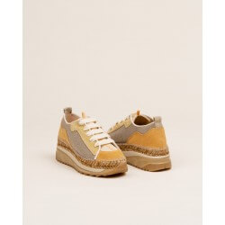 Sneaker gaimo annie en combinación de materiales ecológicos y colores tierra. La sneaker gaimo annie es cómoda y perfecta para un look desenfadado. Hechas artesanalmente en España.
