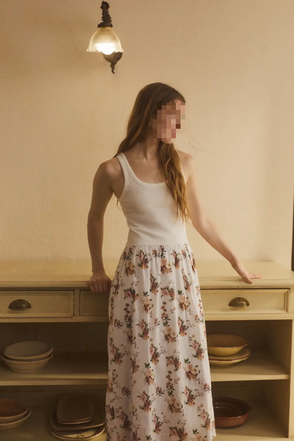 Vestido eseOese Anais combinado de tejidos, estampado floral.