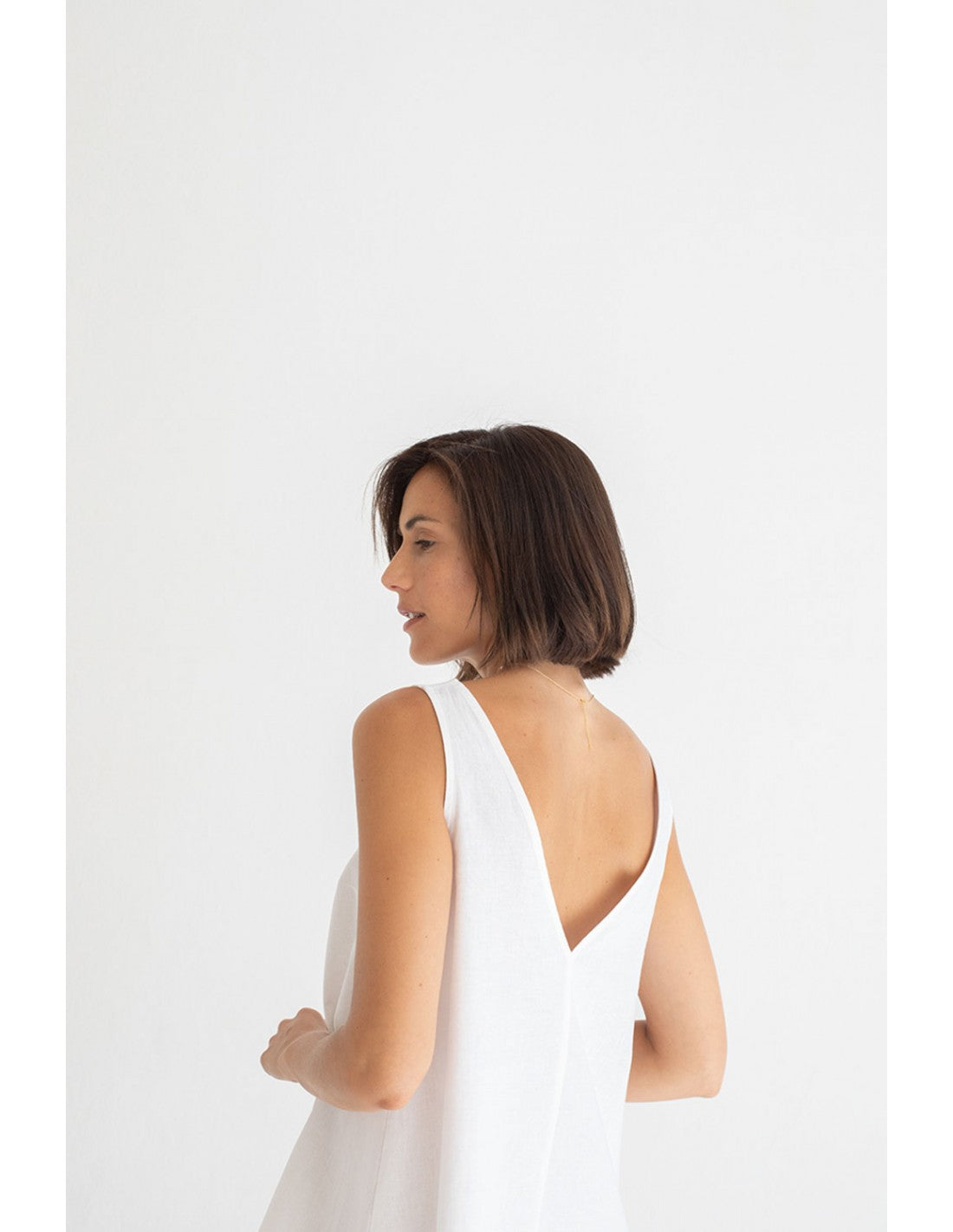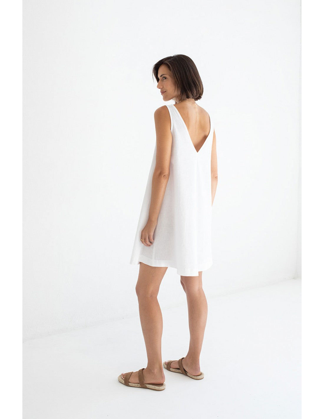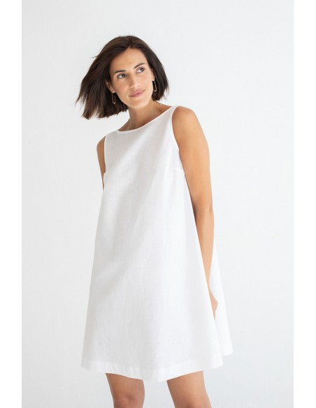 Vestido Mus&Bombon Gibli blanco evasé de lino.