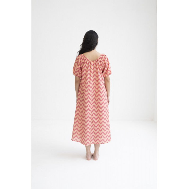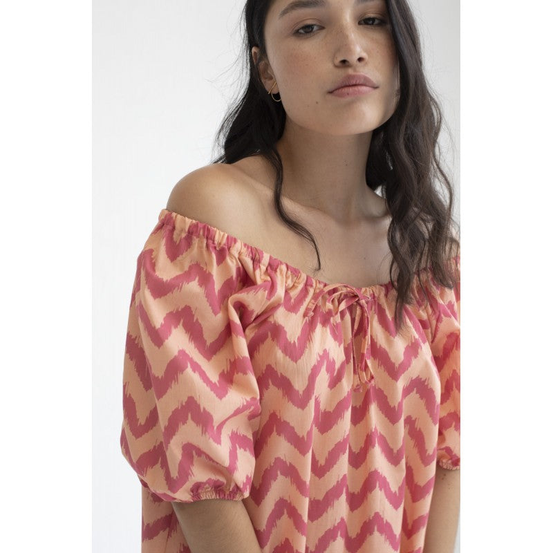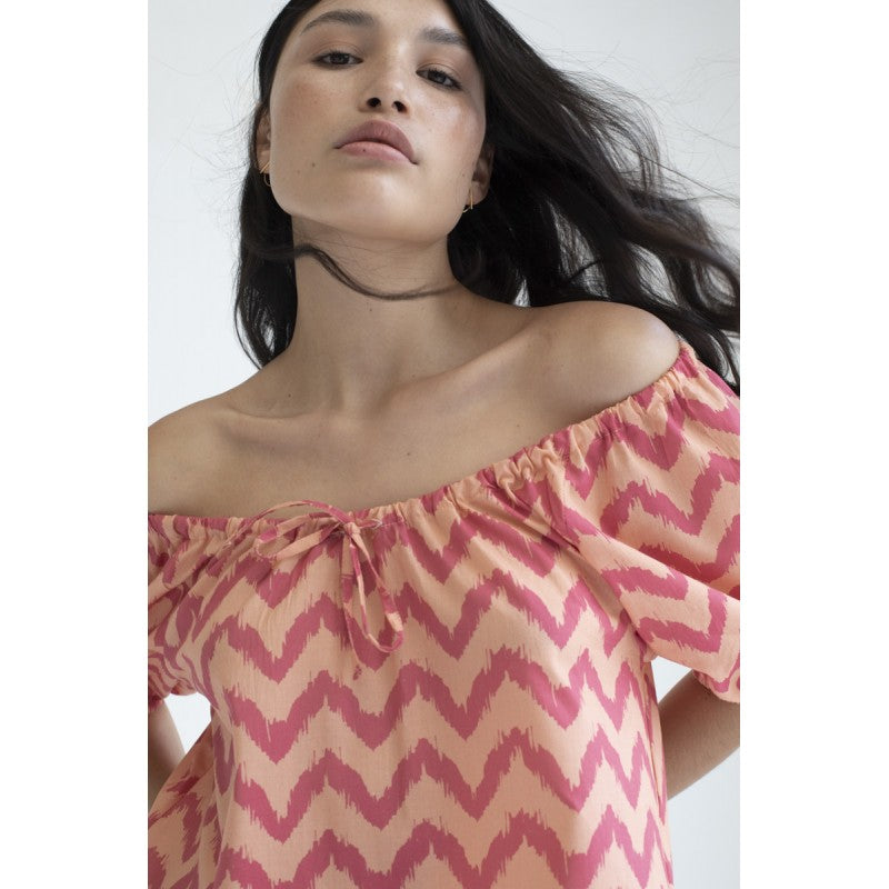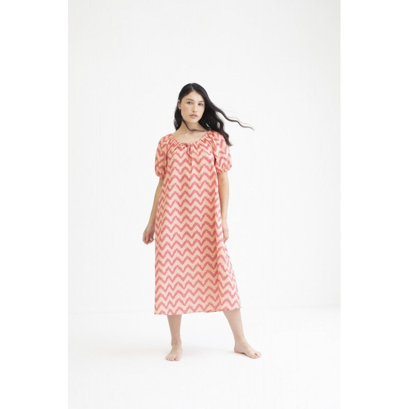 Vestido Mus&Bombon Kadia estampado zig zag color fresa.