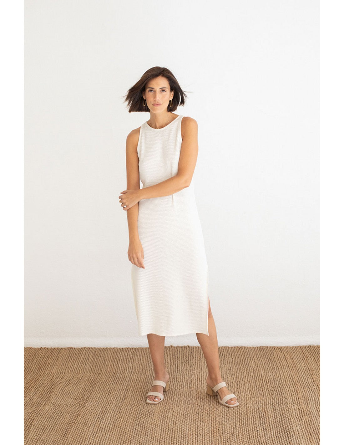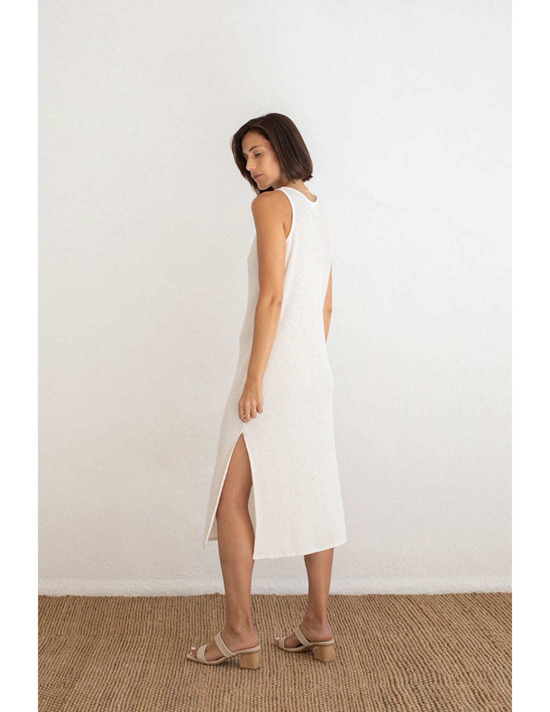 Vestido Mus&Bombon Zonda crudo con escote halter y punto en zigzag.