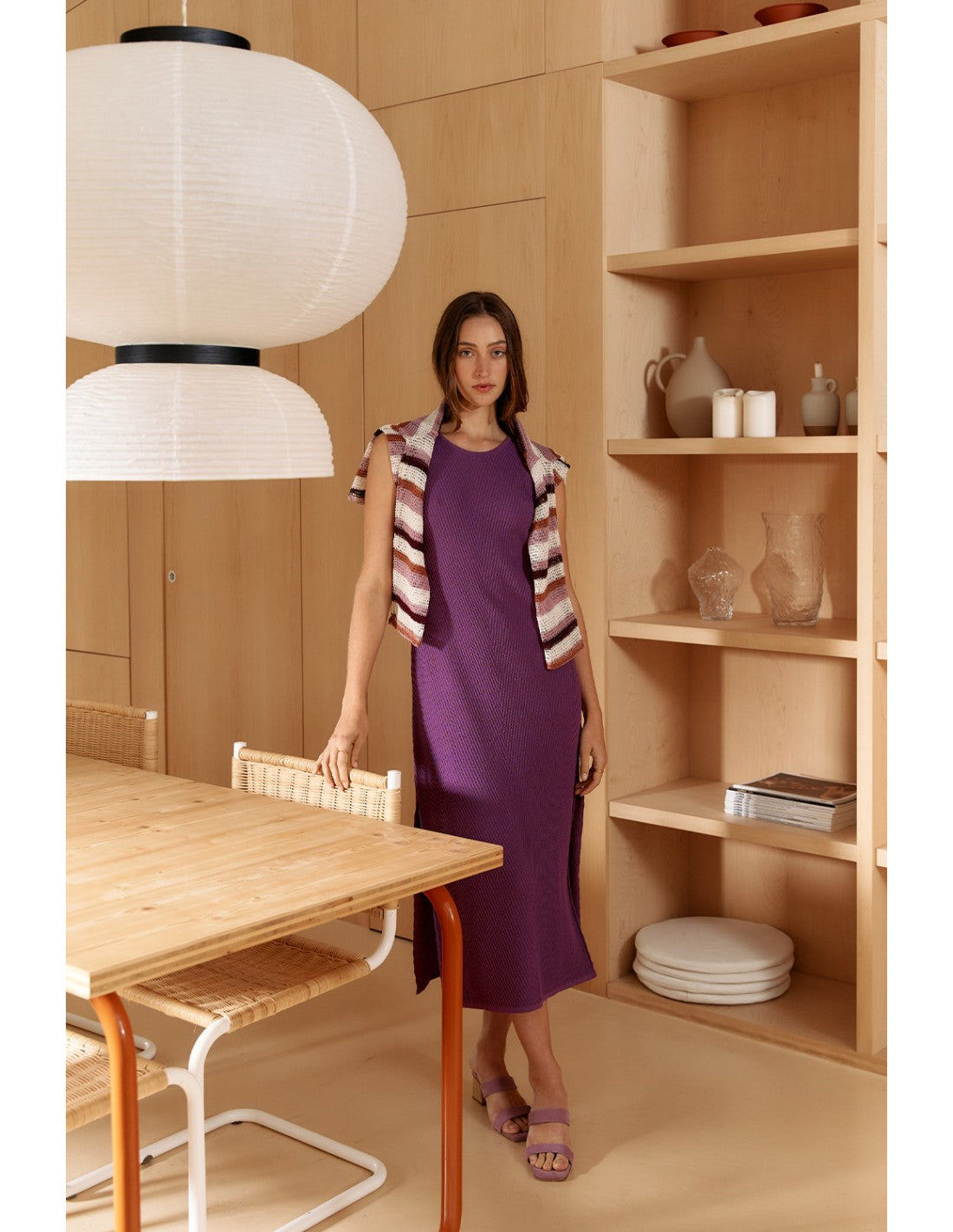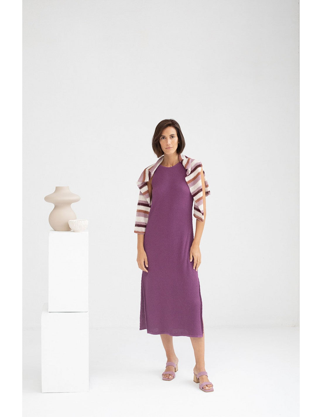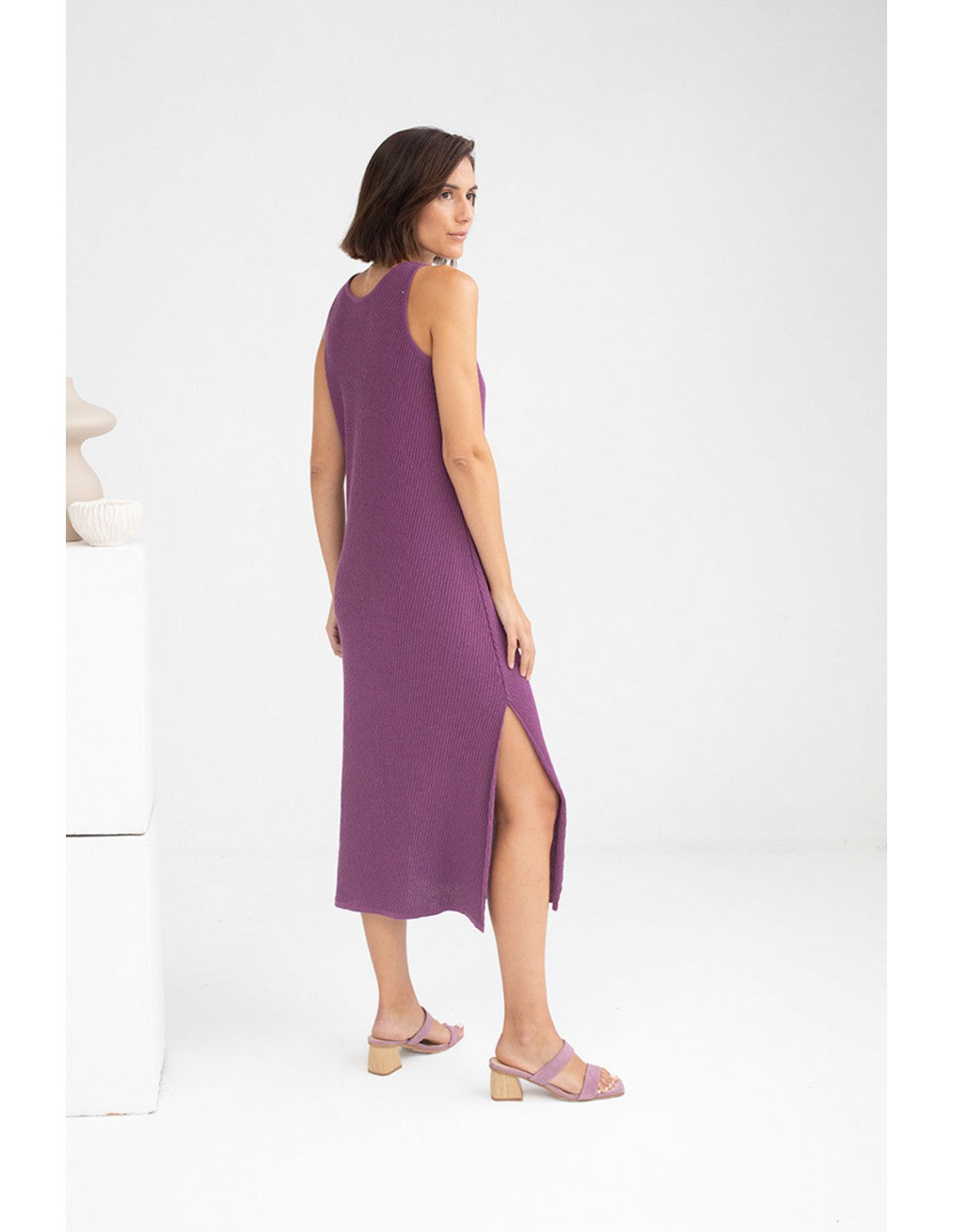 Vestido Mus&Bombon Zonda malva con escote halter y punto en zigzag.
