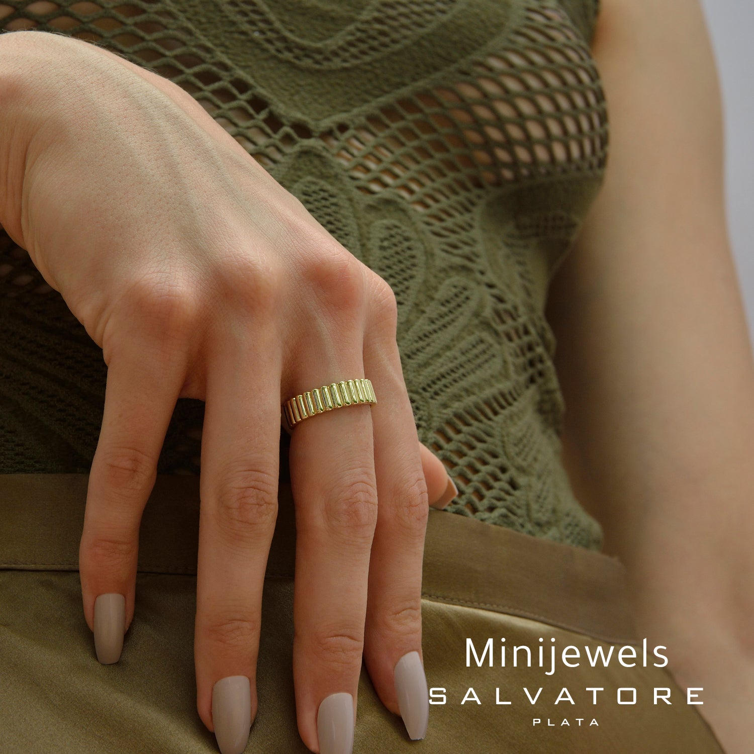 Anillo Salvatore Plata con baño de oro y dibujo.