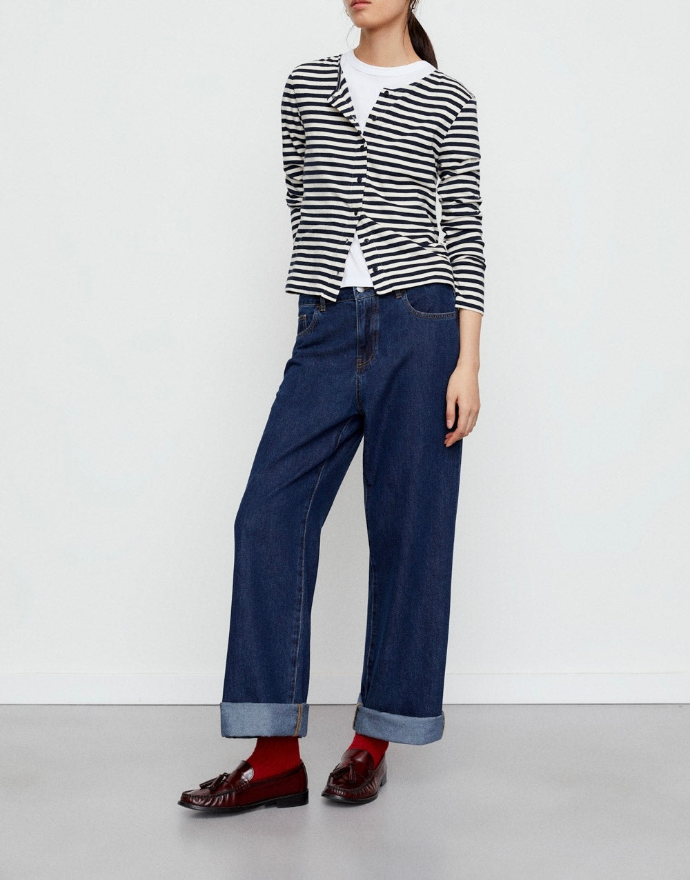 Cardigan eseOese Riviera de punto fino con estampado de rayas.