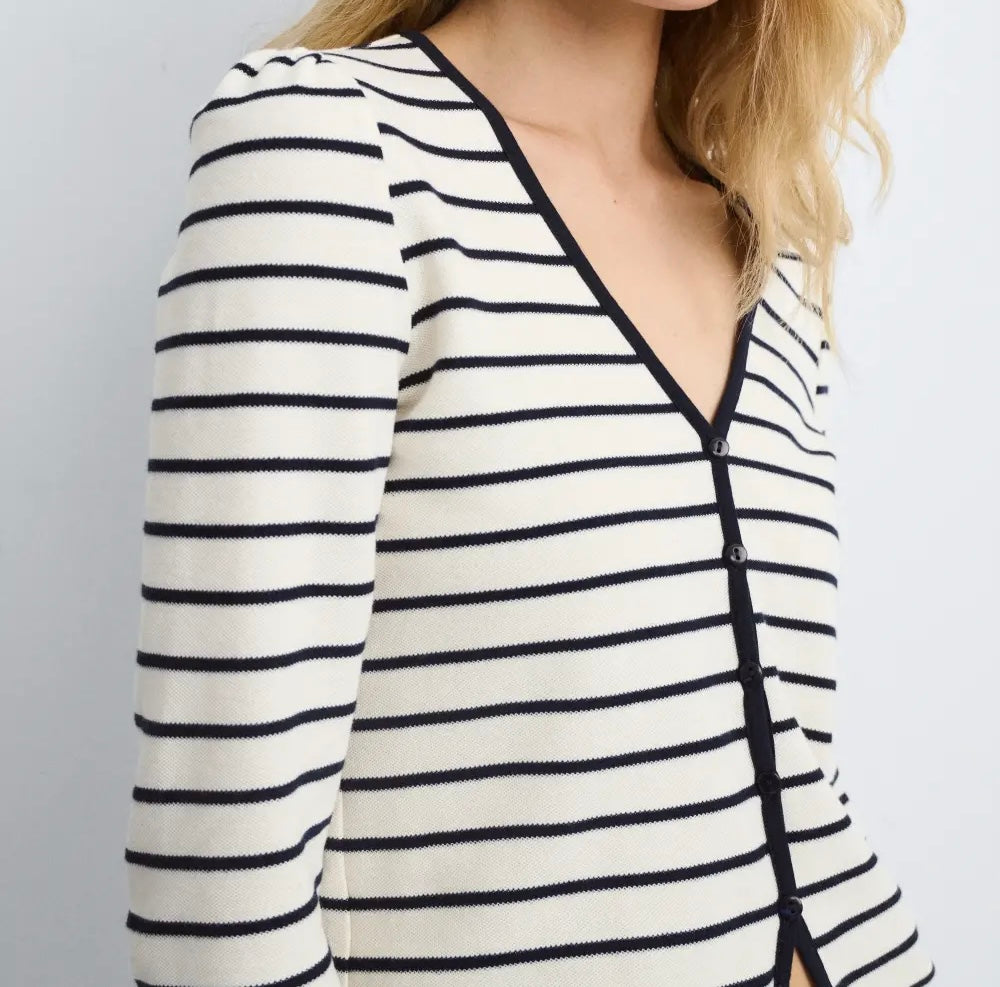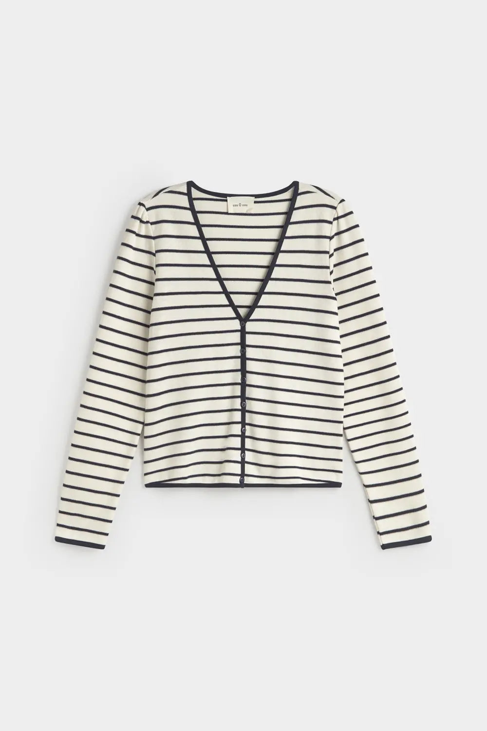 Chaqueta eseOese Biarritz de punto con estampado de rayas en azul marino.