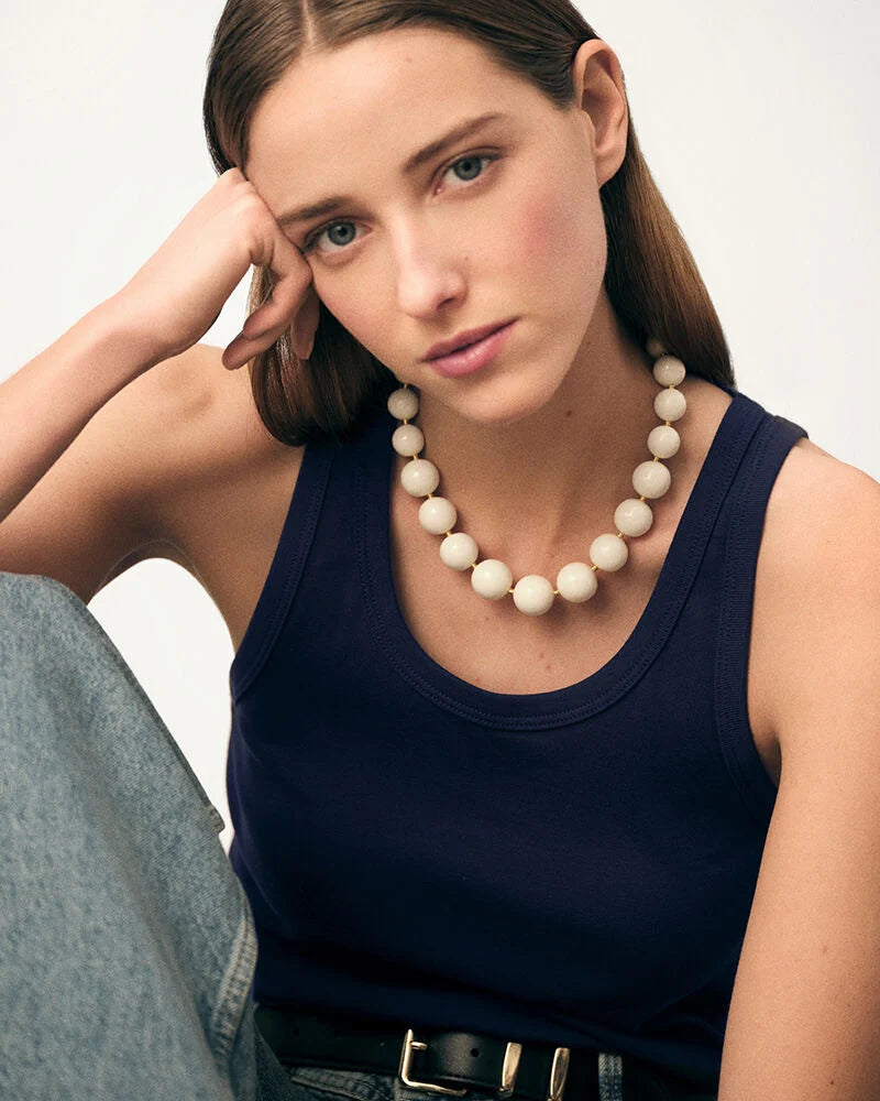 Collar AGATHA PARIS Palais de bolas de acetato en color marfil.