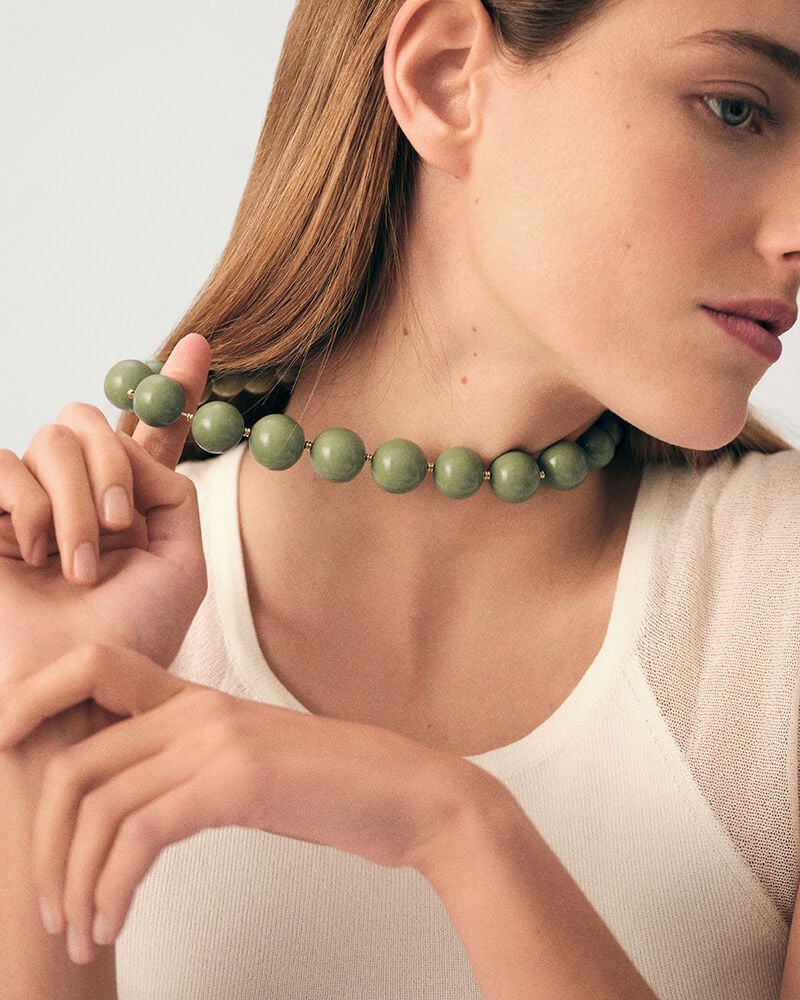 Collar AGATHA PARIS Palais de bolas de acetato en color verde.