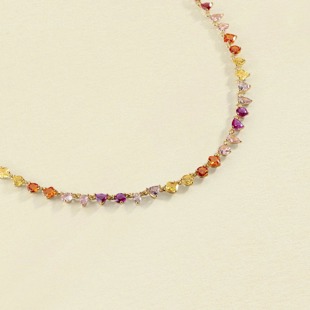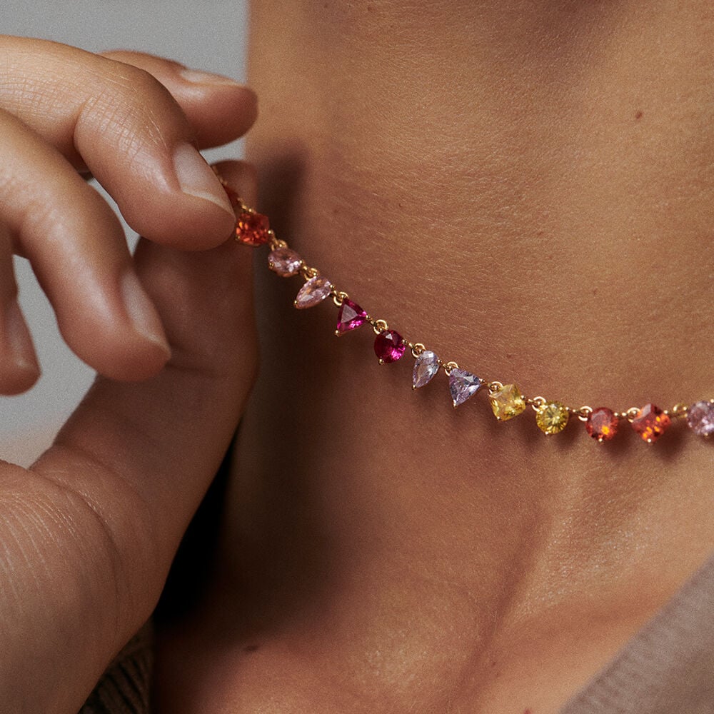 Collar Agatha Paris Vague acabado en oro con circonitas de diferentes formas y colores.