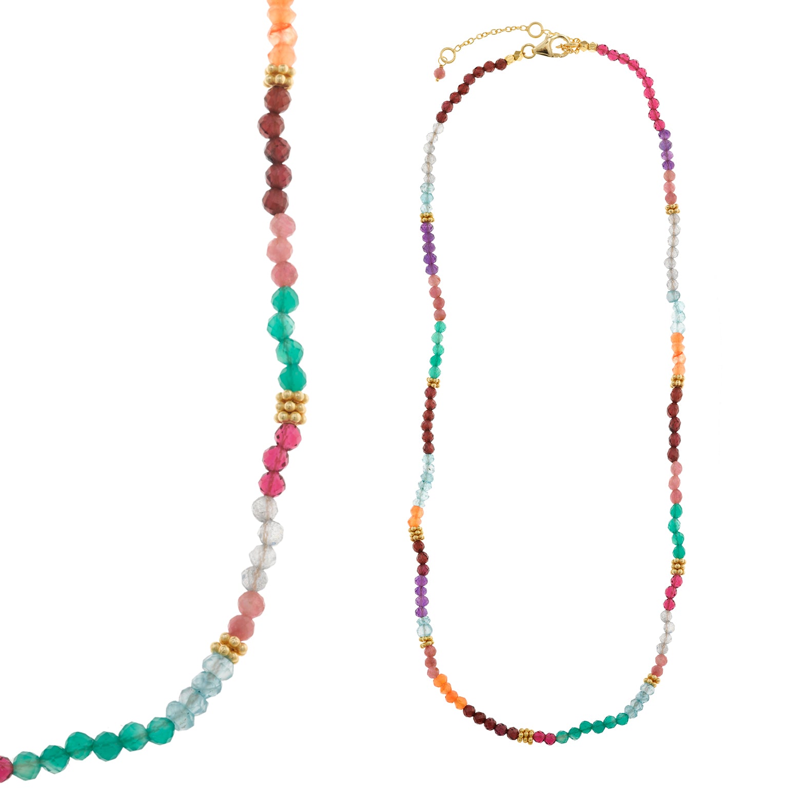 Collar Salvatore Plata 163C0153 de bolitas turmalinas multicolor facetadas.