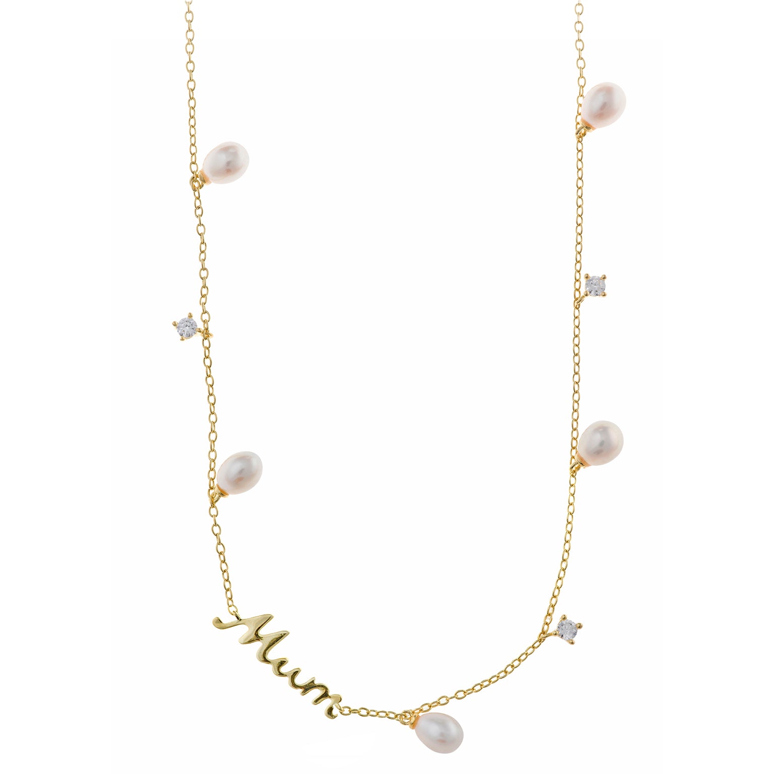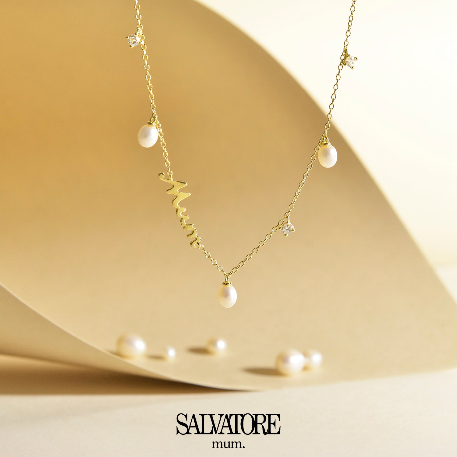 Collar SALVATORE PLATA 272C0032 en plata con baño de oro, perlas, circonitas y las letras MUM.