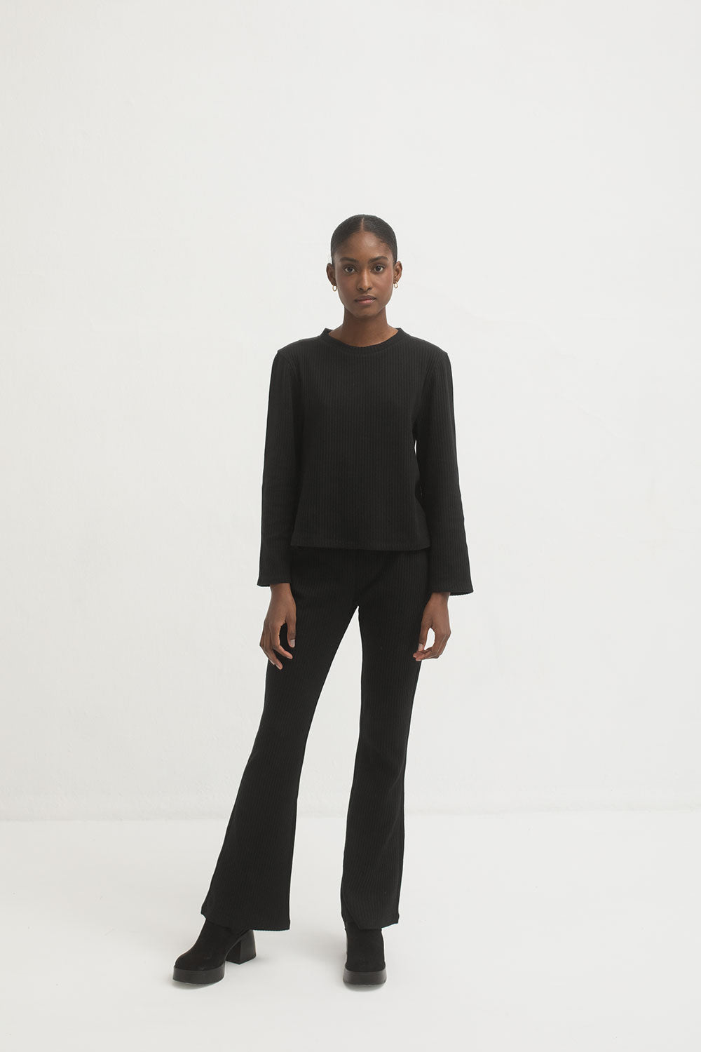 Pantalón Mus & Bombon Colorado en negro de canalé y ligeramente acampanado.