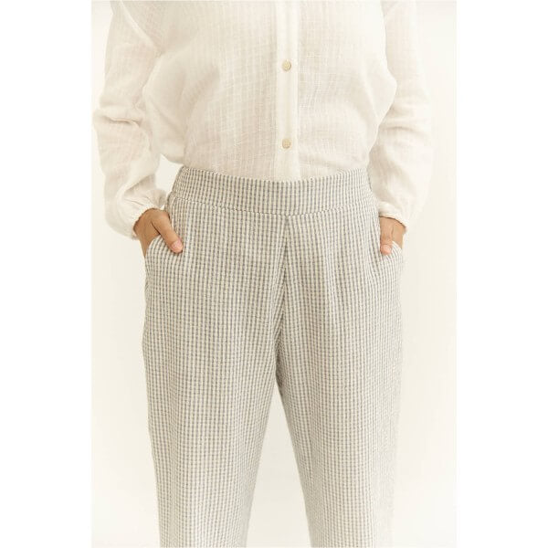 Pantalon mus&bombon ilia con estampado vichy en azul, cintura con gomilla en la parte trasera y bolsillos laterales. El pantalón mus&bombon ilia es cómodo y estiloso, perfectos para esta temporada.