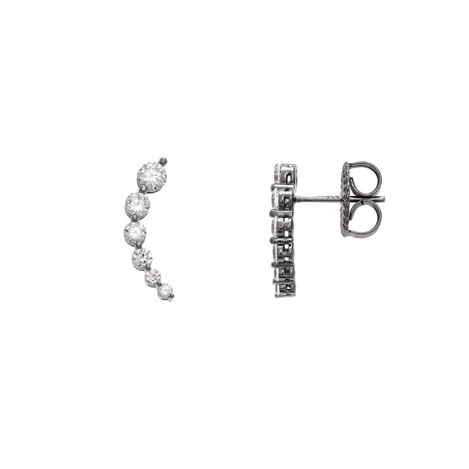 Pendientes SALVATORE PLATA 136A0255 estilo trepador en plata chapada con rutenio y circonitas blancas.
