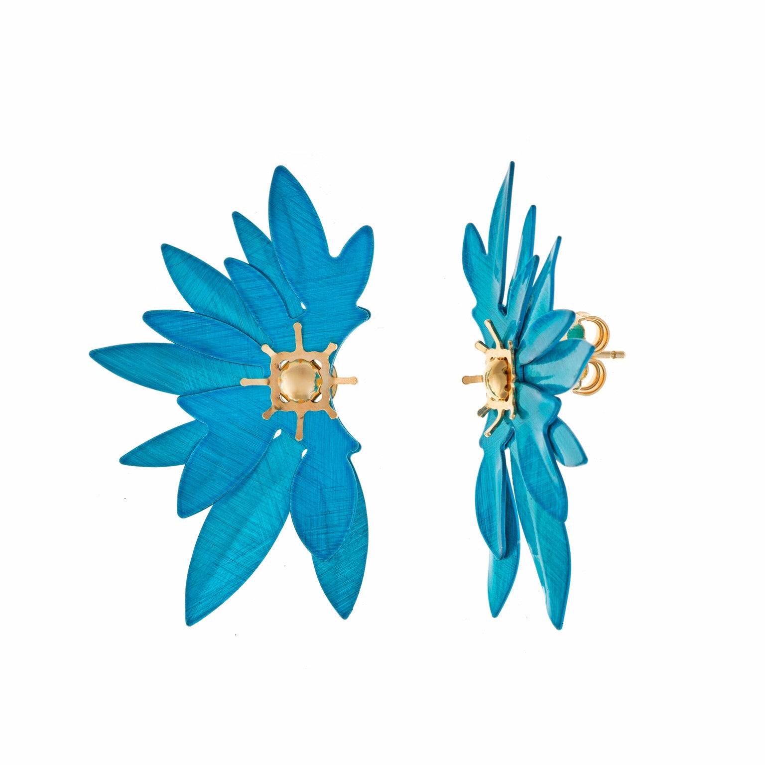 Pendientes SALVATORE PLATA 203A0359 de plata dorada diamantado en color azul turquesa y forma de flor.