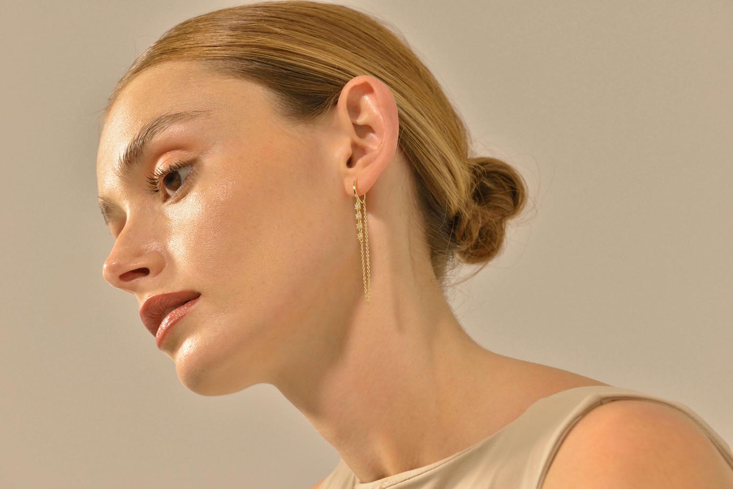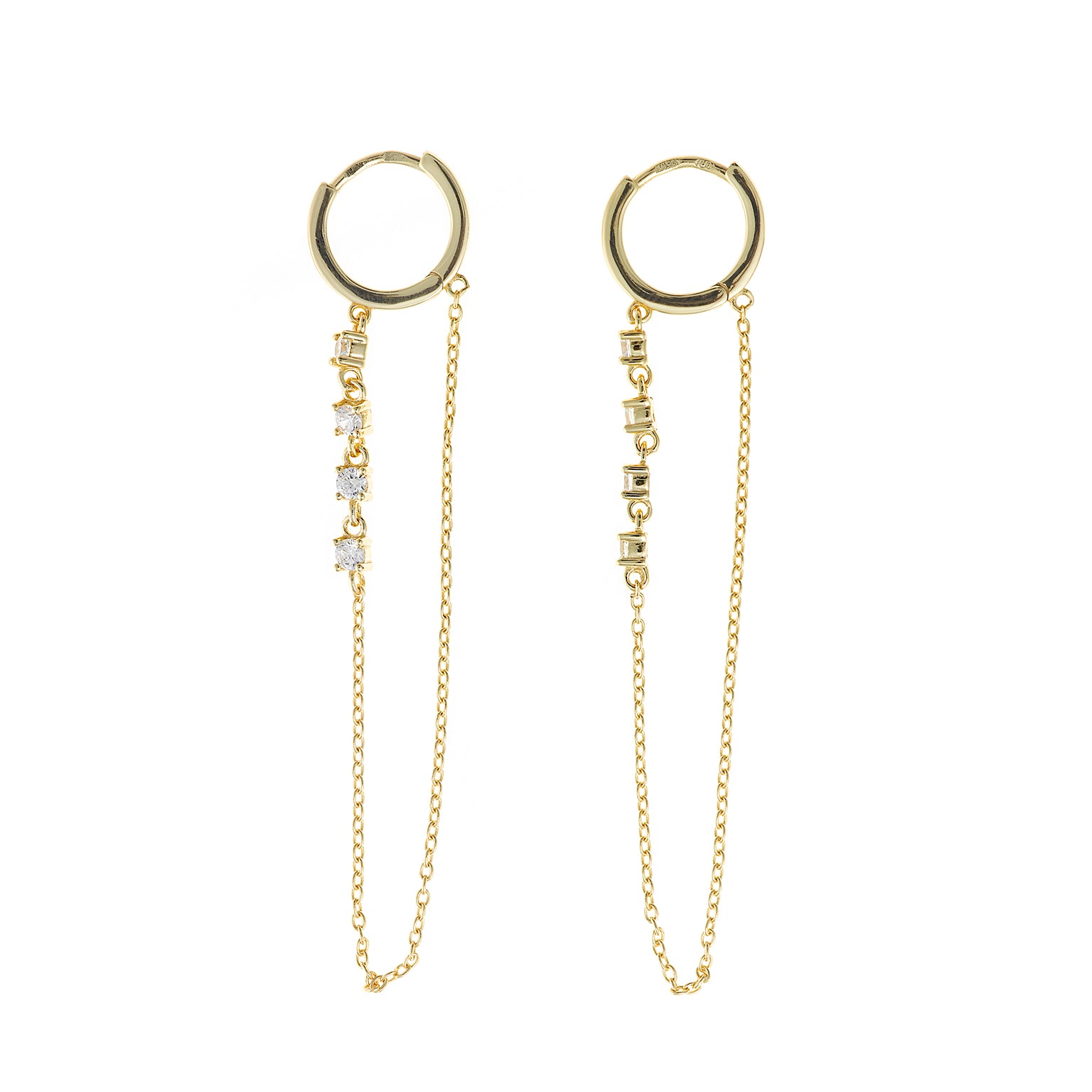 Pendientes Salvatore Plata 213A0570 aros en plata dorada con cadena y circonitas blancas de colgante.