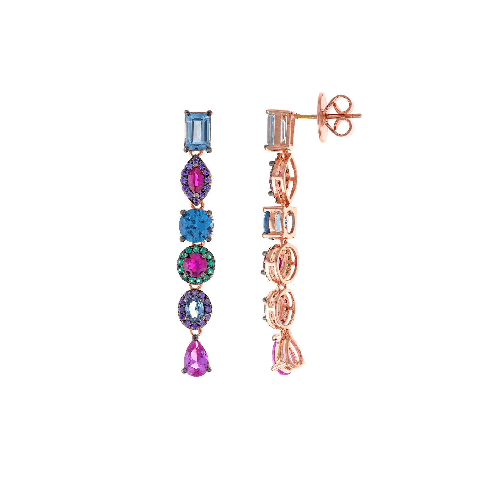 Pendientes Salvatore Plata con circonitas multicolor y acabado plata rosa.