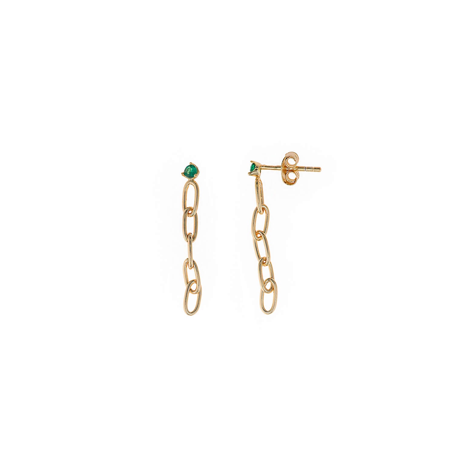 Pendientes Salvatore Plata con forma de eslabones y circonita verde, hecho en plata dorada.
