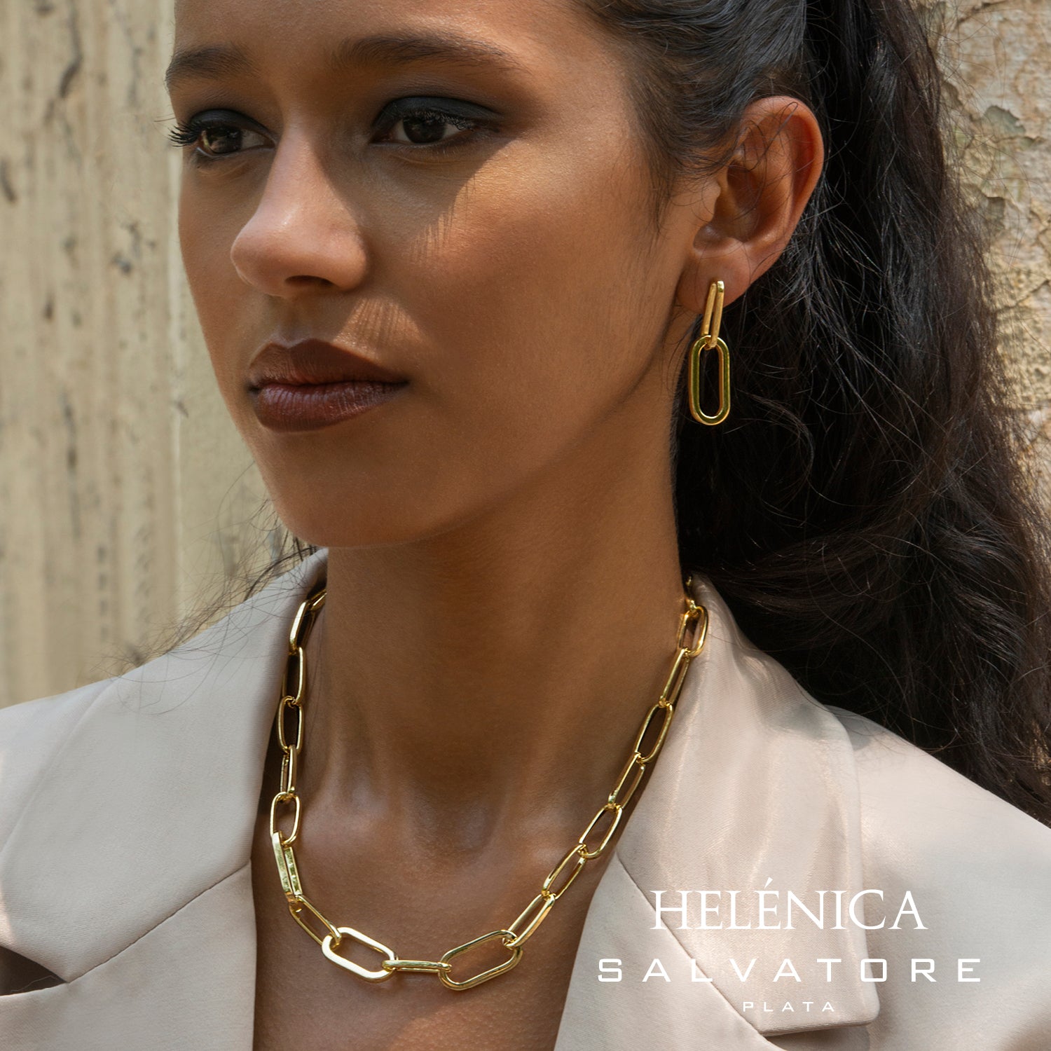 Pendientes Salvatore Plata eslabones en chapado de oro.