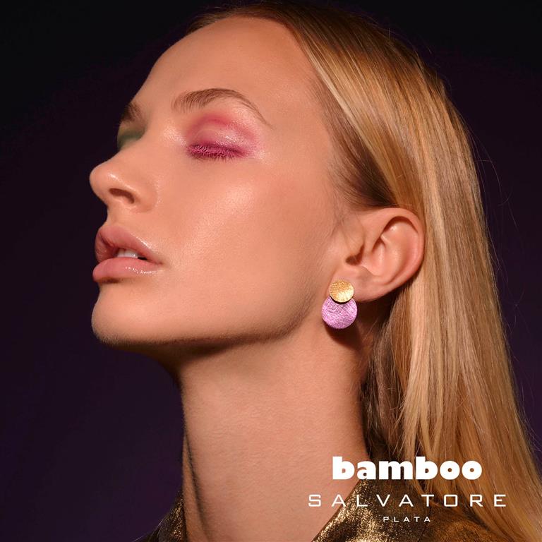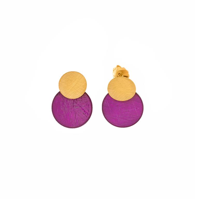 Pendientes Salvatore Plata con esmalte morado, plata dorada y matizado.