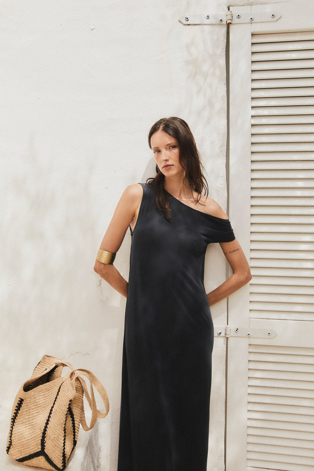 Vestido eseOese Olimpia en color carbón y tejido de tacto suave.